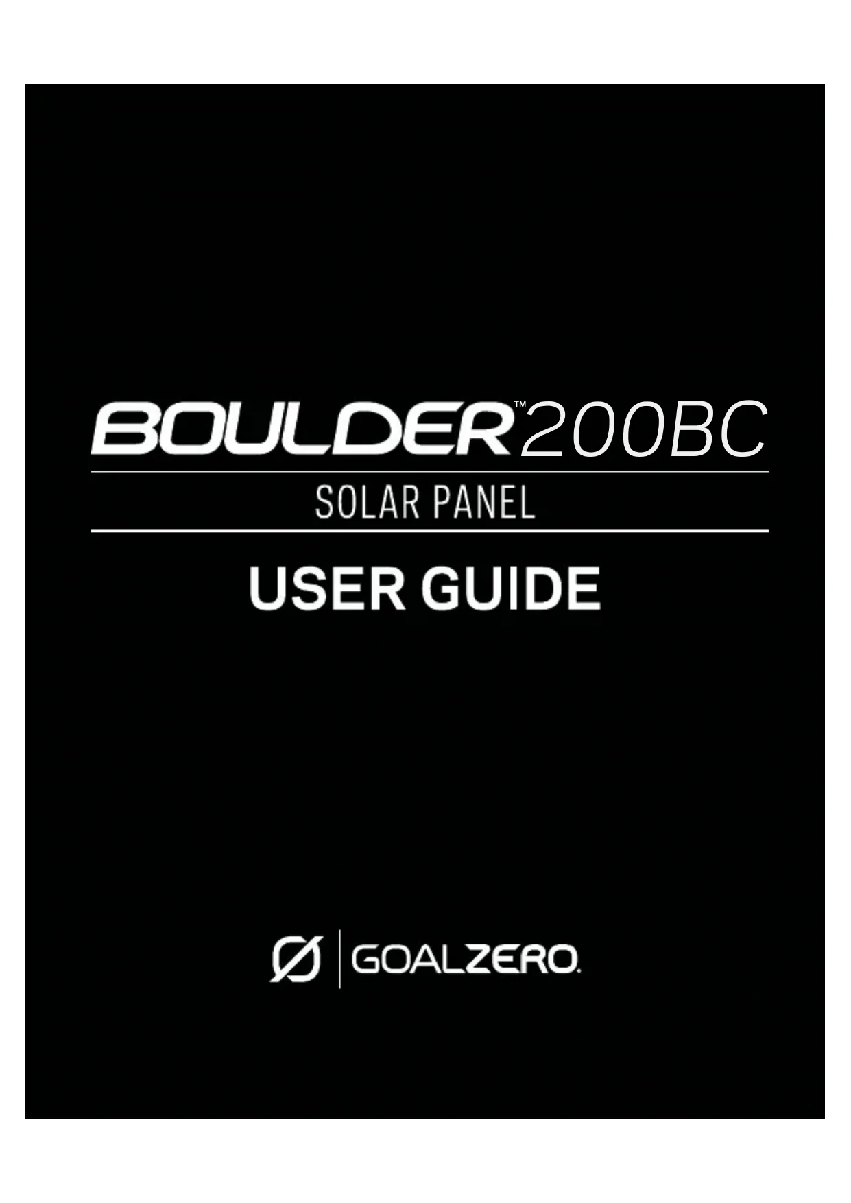 Boulder 200BC - Panneau solaire GOAL ZERO - Notice d'utilisation et mode d'emploi gratuit