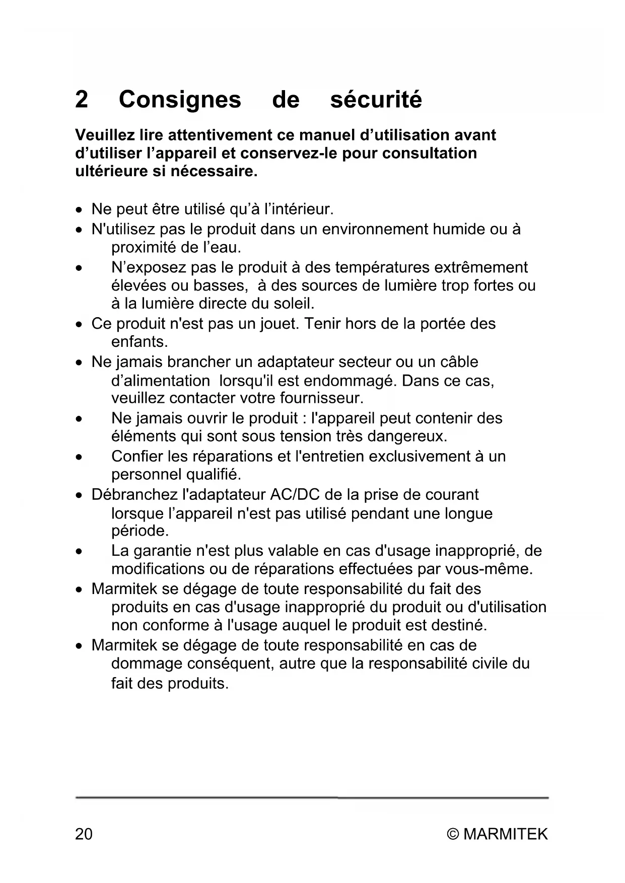 - Marmitek se dégage de toute responsabilité en cas de dommage conséquent, autre que la responsabilité civile du fait des produits.