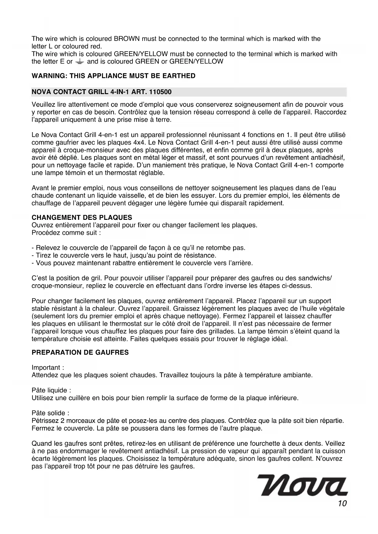 MODE D'EMPLOI Contact Grill 4in1 NOVA