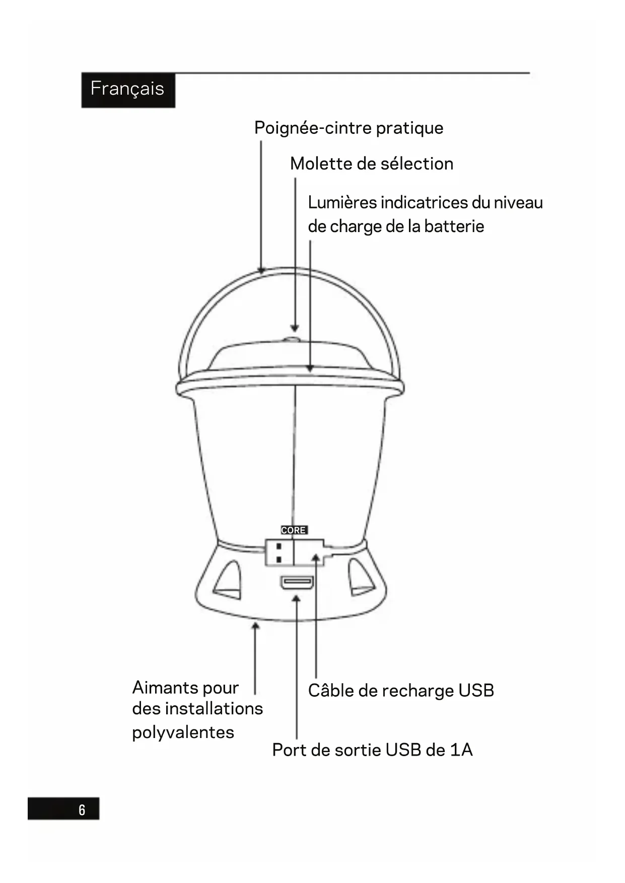 | Type de produit | Lampe de camping rechargeable |
