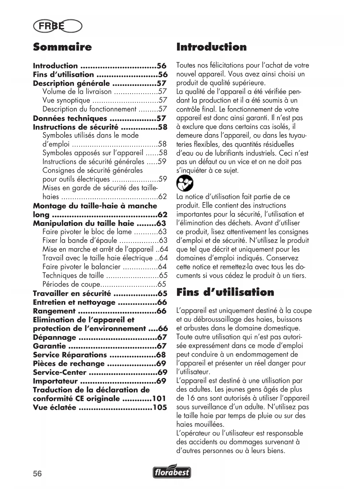 - Fins d’utilisation p. 56
