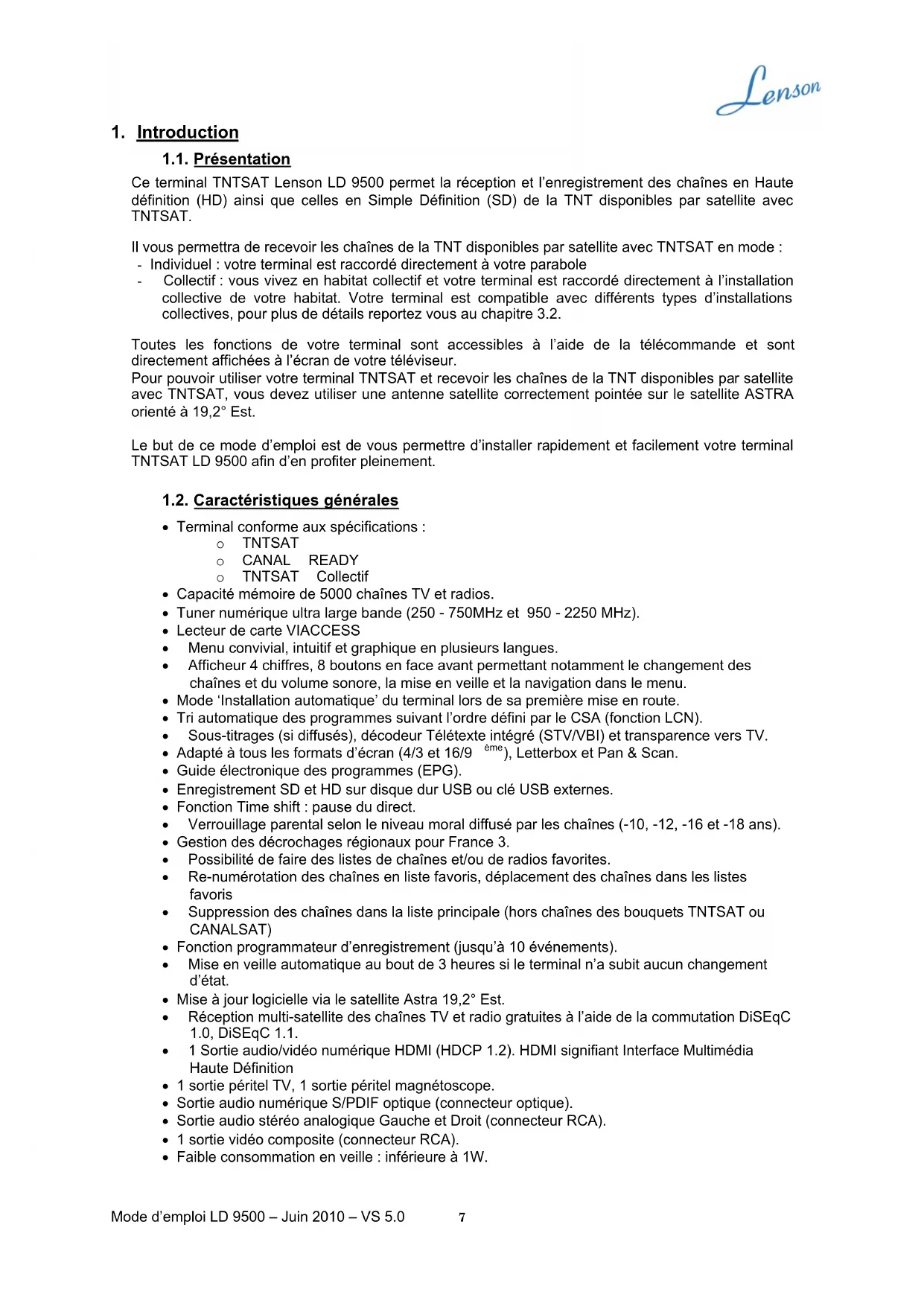 LD 9500 - Recepteur Lenson - Notice d'utilisation et mode d'emploi gratuit