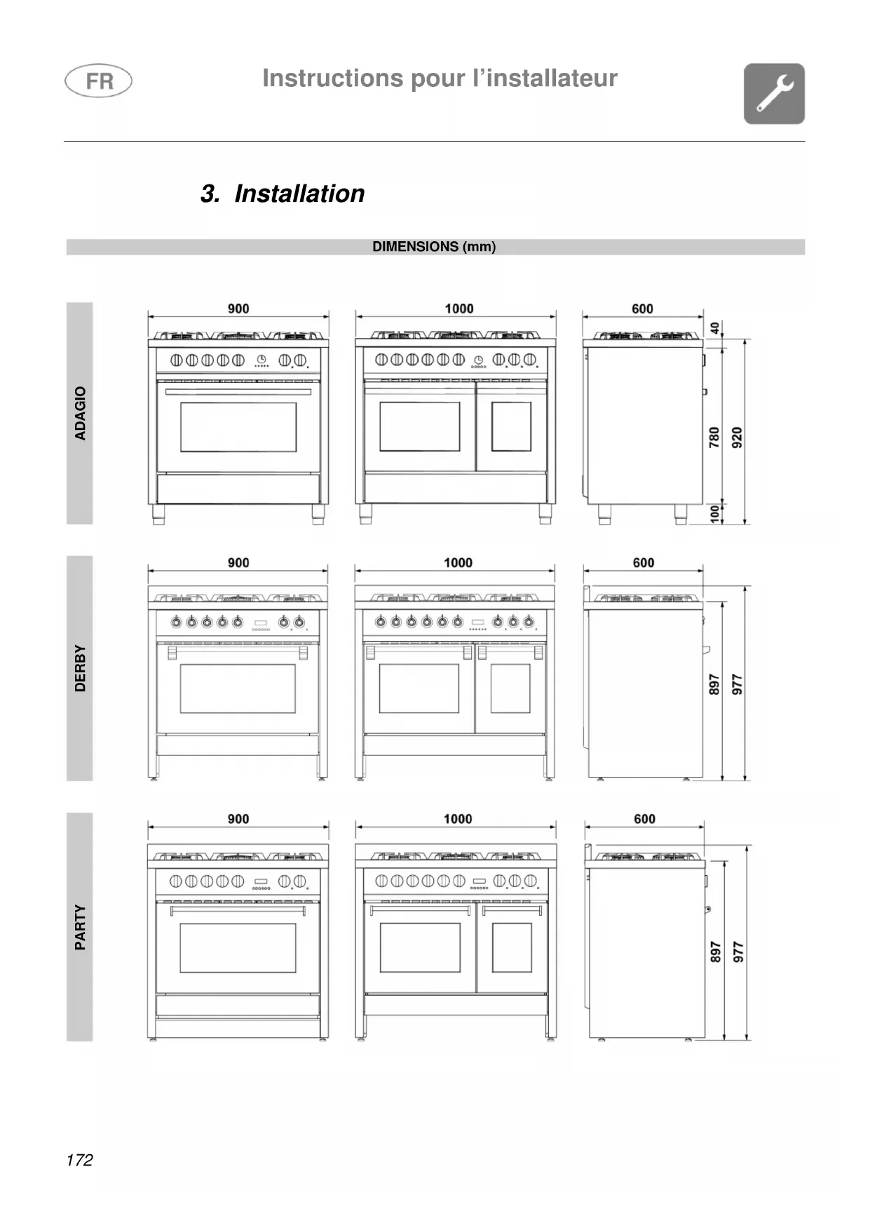 Les appareils de cuisson décrits dans ce manuel d’utilisation appartiennent aux classes d’installations suivantes: