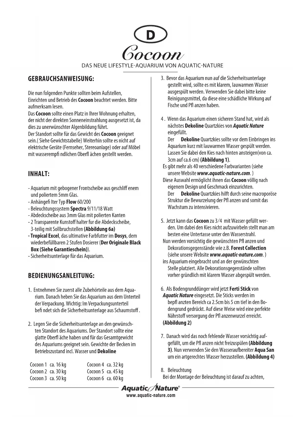 Cocoon 6 - Aquarium Aquatic Nature - Notice d'utilisation et mode d'emploi gratuit
