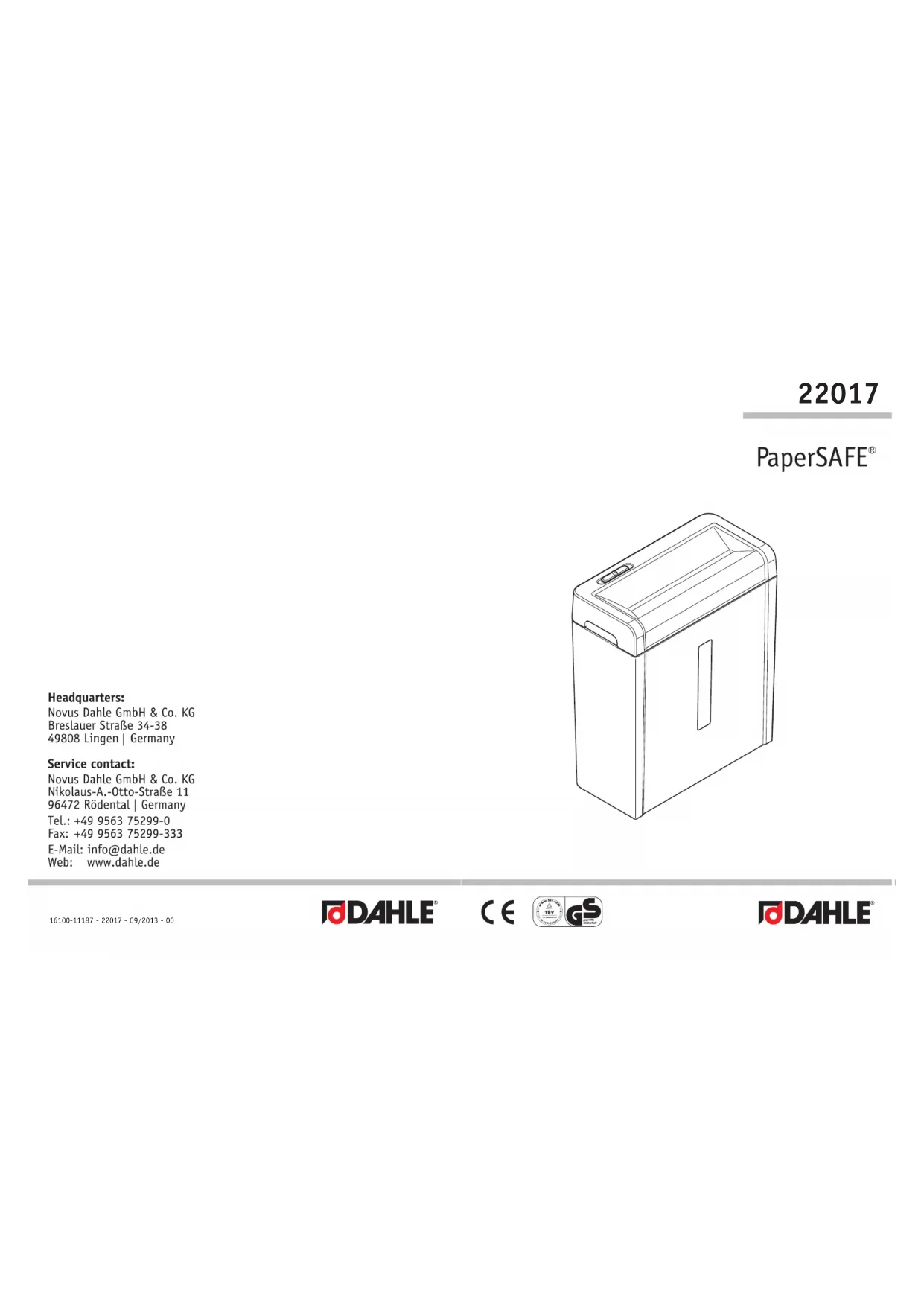 Retrouvez gratuitement la notice de l'appareil PaperSAFE 22017 Dahle au format PDF.