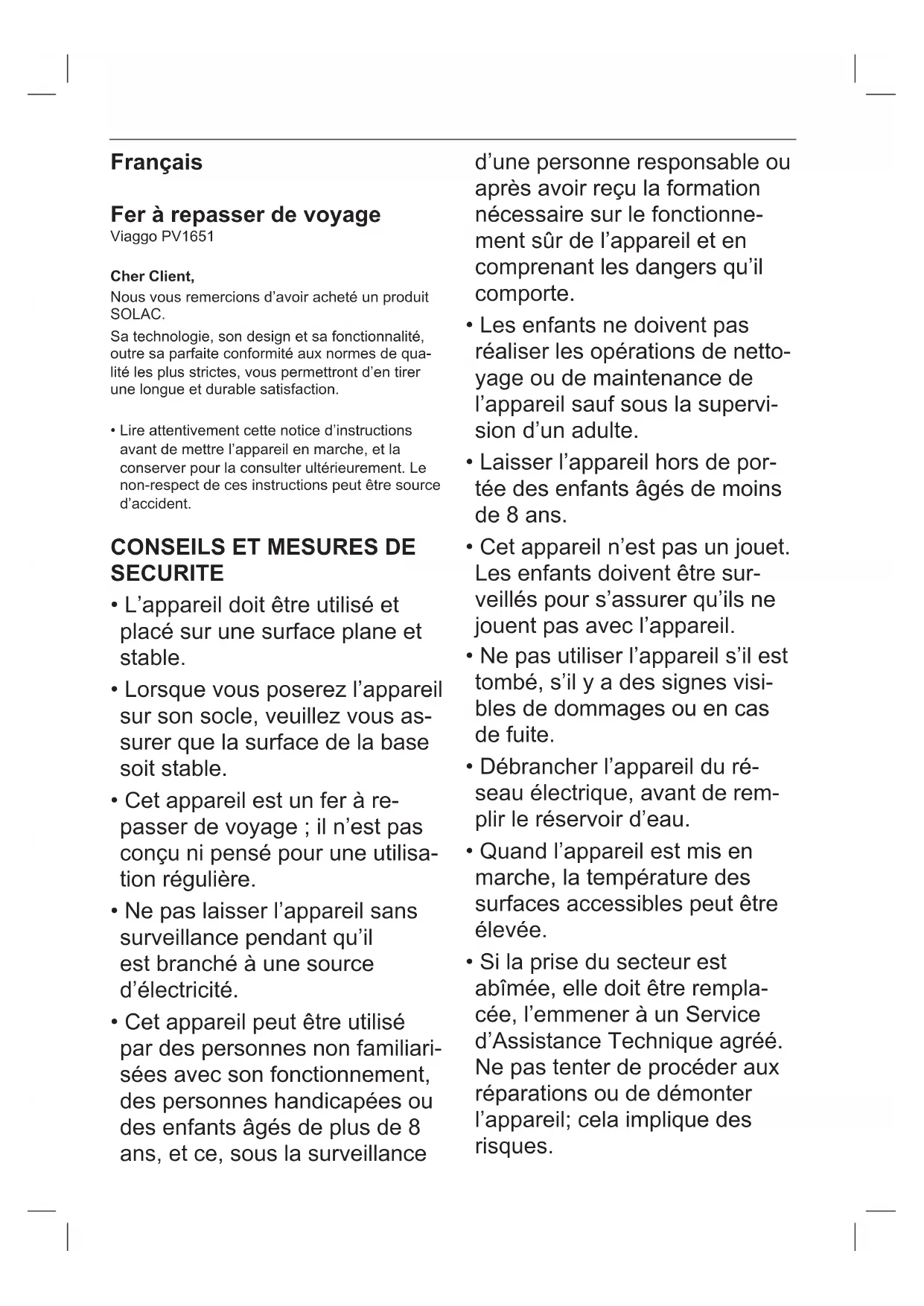Retrouvez gratuitement la notice de l'appareil PV1651 SOLAC au format PDF.