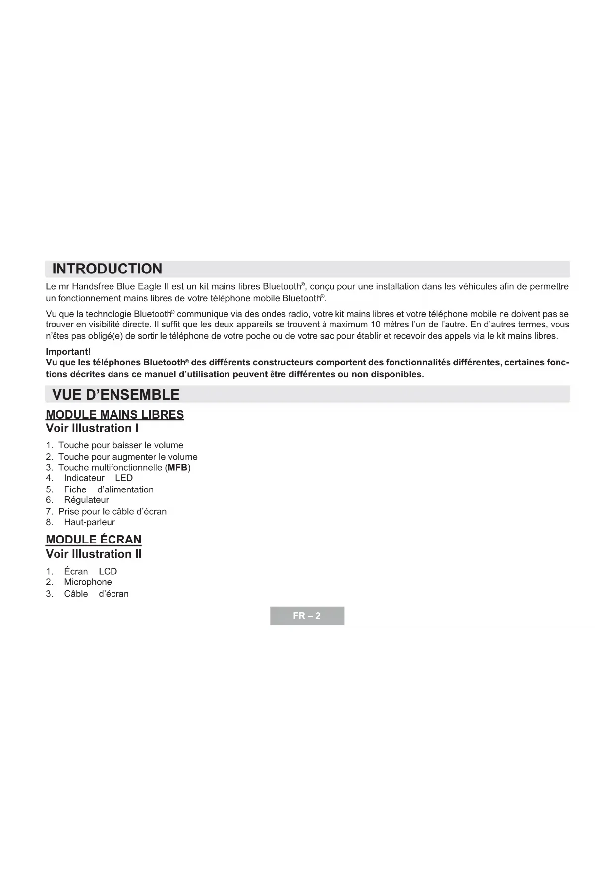 MODE D'EMPLOI Blue Eagle II MR HANDSFREE