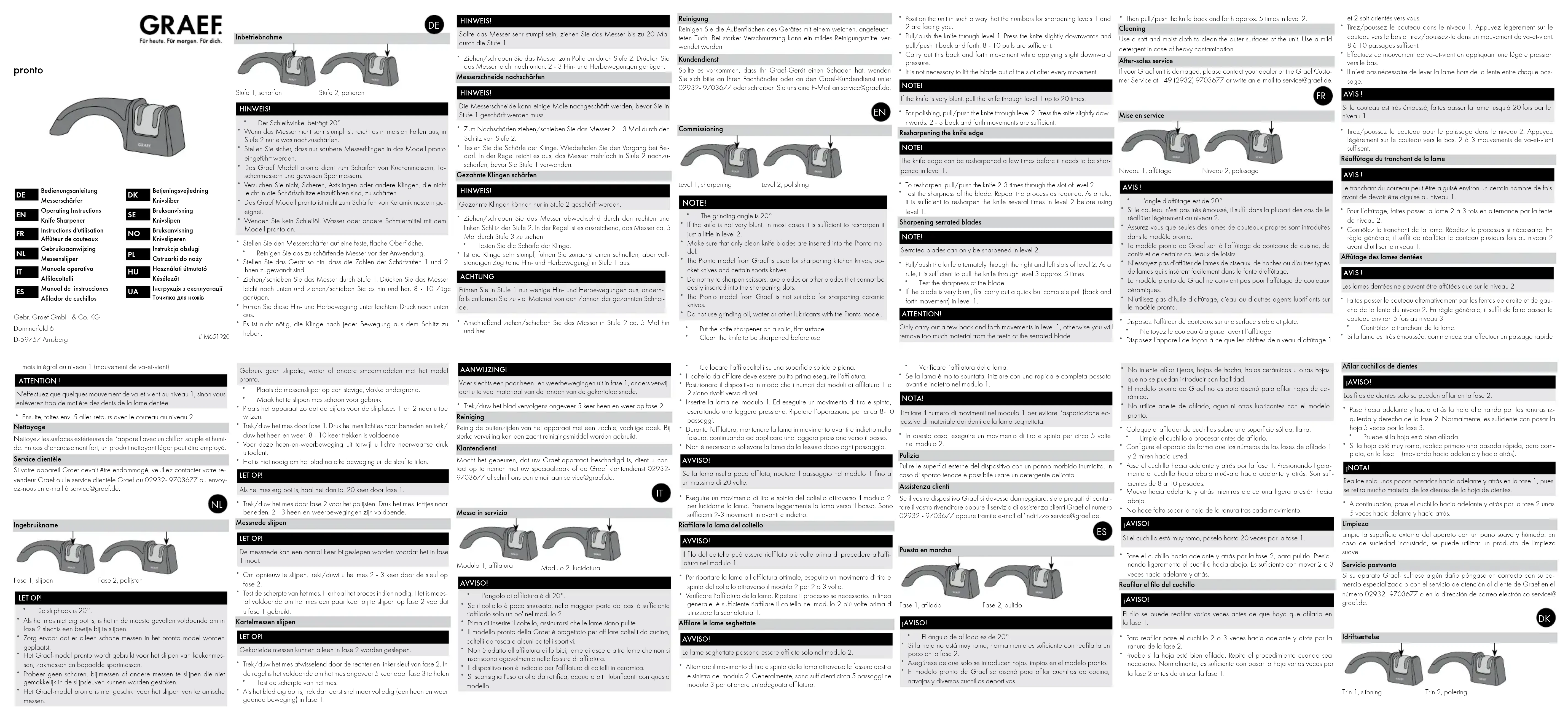 Pronto - Aiguisoir GRAEF - Notice d'utilisation et mode d'emploi gratuit