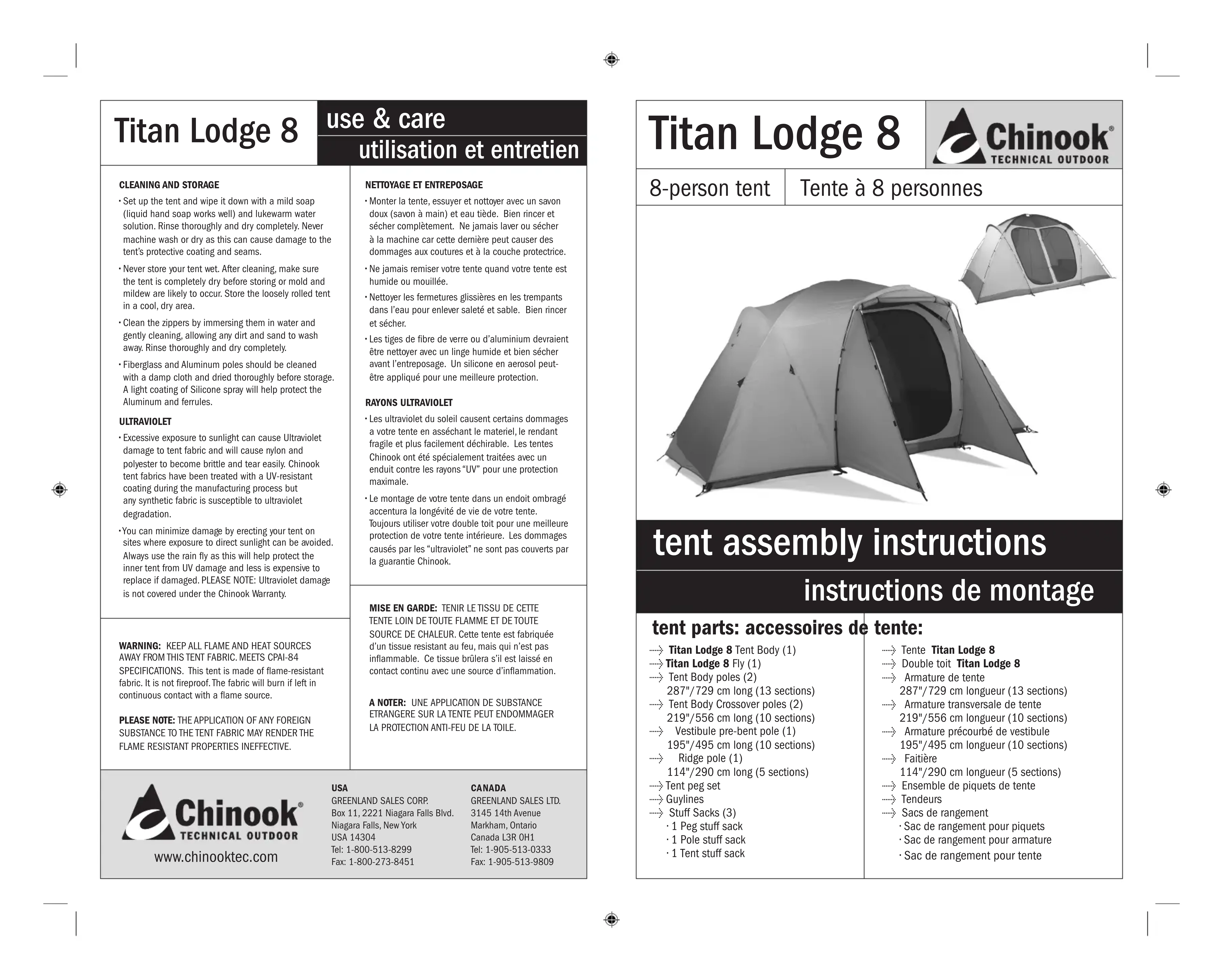 Merci pour l'achat de nouvelle tentative Chinook. Nous avons dessiné et fabriqu nos tentes pour vous donner des années de plaisir sans maux de tête. Pour maximiser votre plaisir, s.x.p. line attentivement les instructions de montage et de soins à prendre pour conserver vos tente enonne condition.