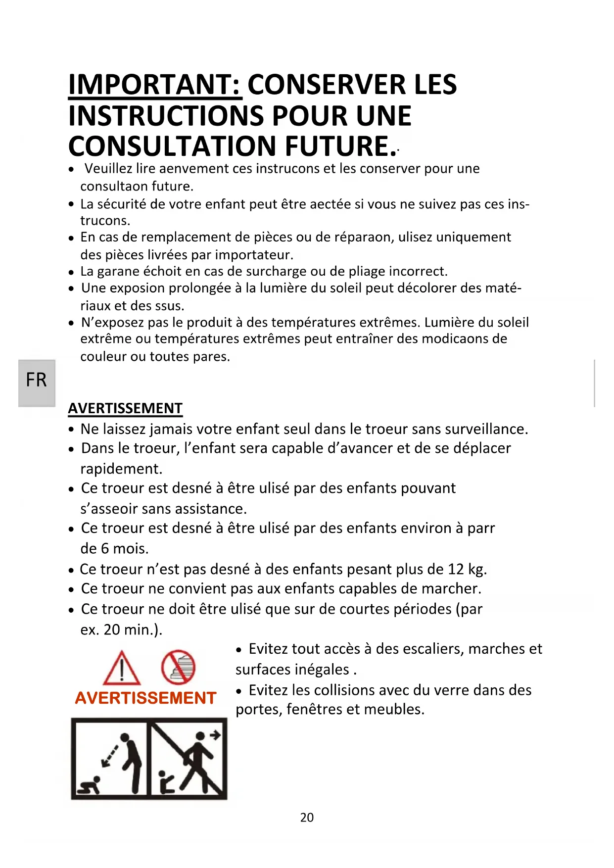 - Ce troeur ne convient pas aux enfants capables de marcher.