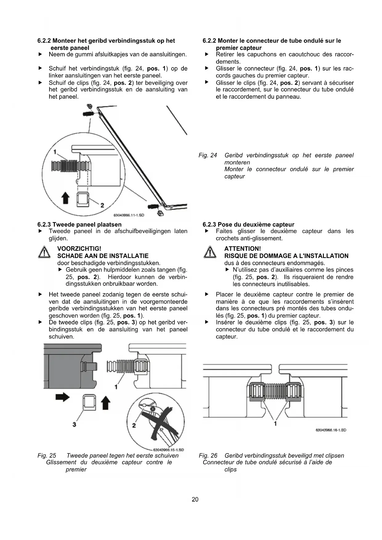 | - monteer het geribd verbindingsstuk op het eerste paneel 20 - monter le connecteur de tube ondulé sur le premier capteur |
