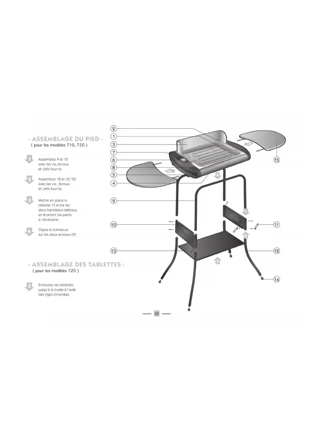 - Veillez à ce que le grill barbecue soit bien clippé sur les deux arceaux galbés (voir gure 1 et 2 ci-dessous). Montage des tablettes (selon modèle)