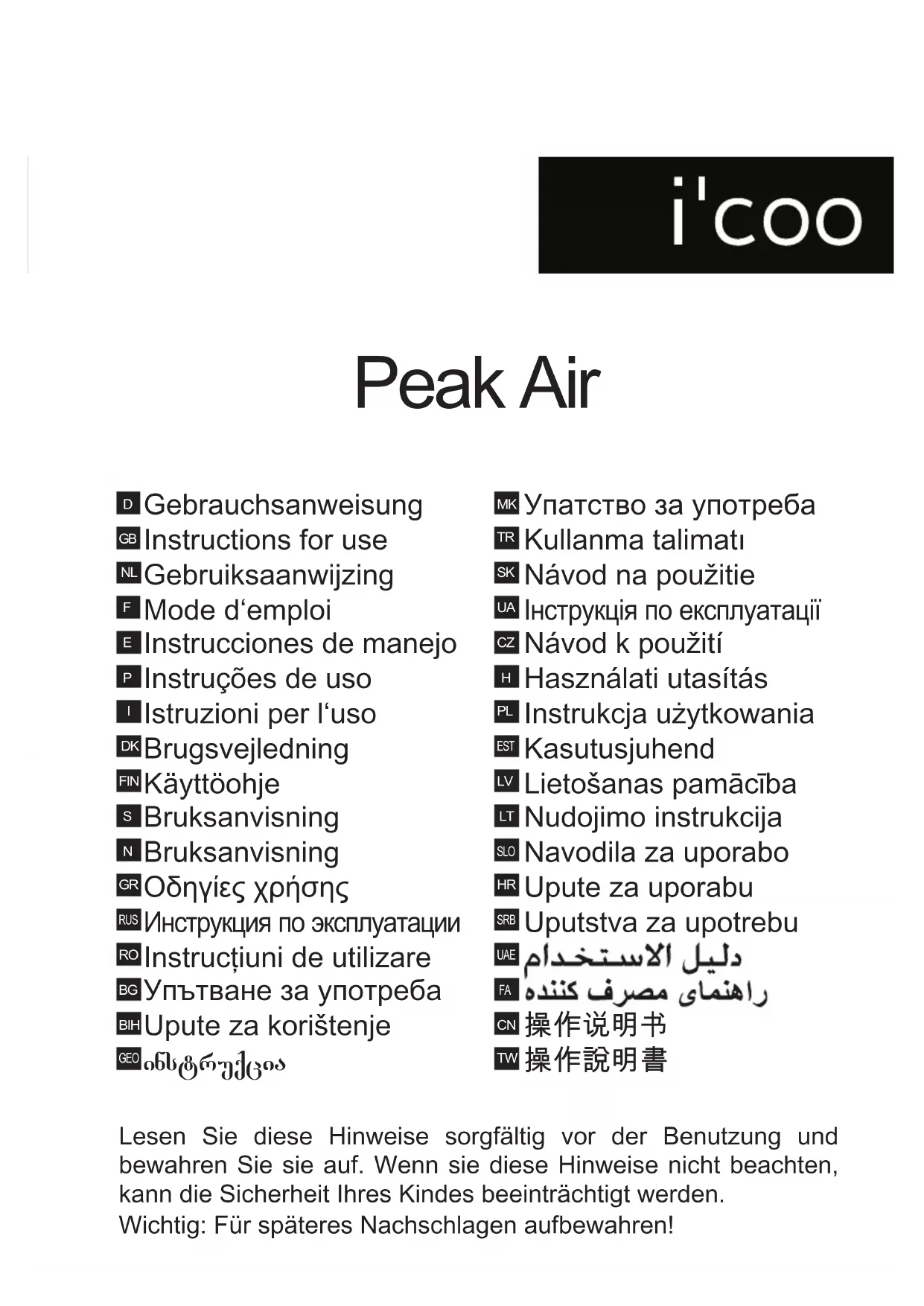 Peak Air - Poussette i'coo - Notice d'utilisation et mode d'emploi gratuit