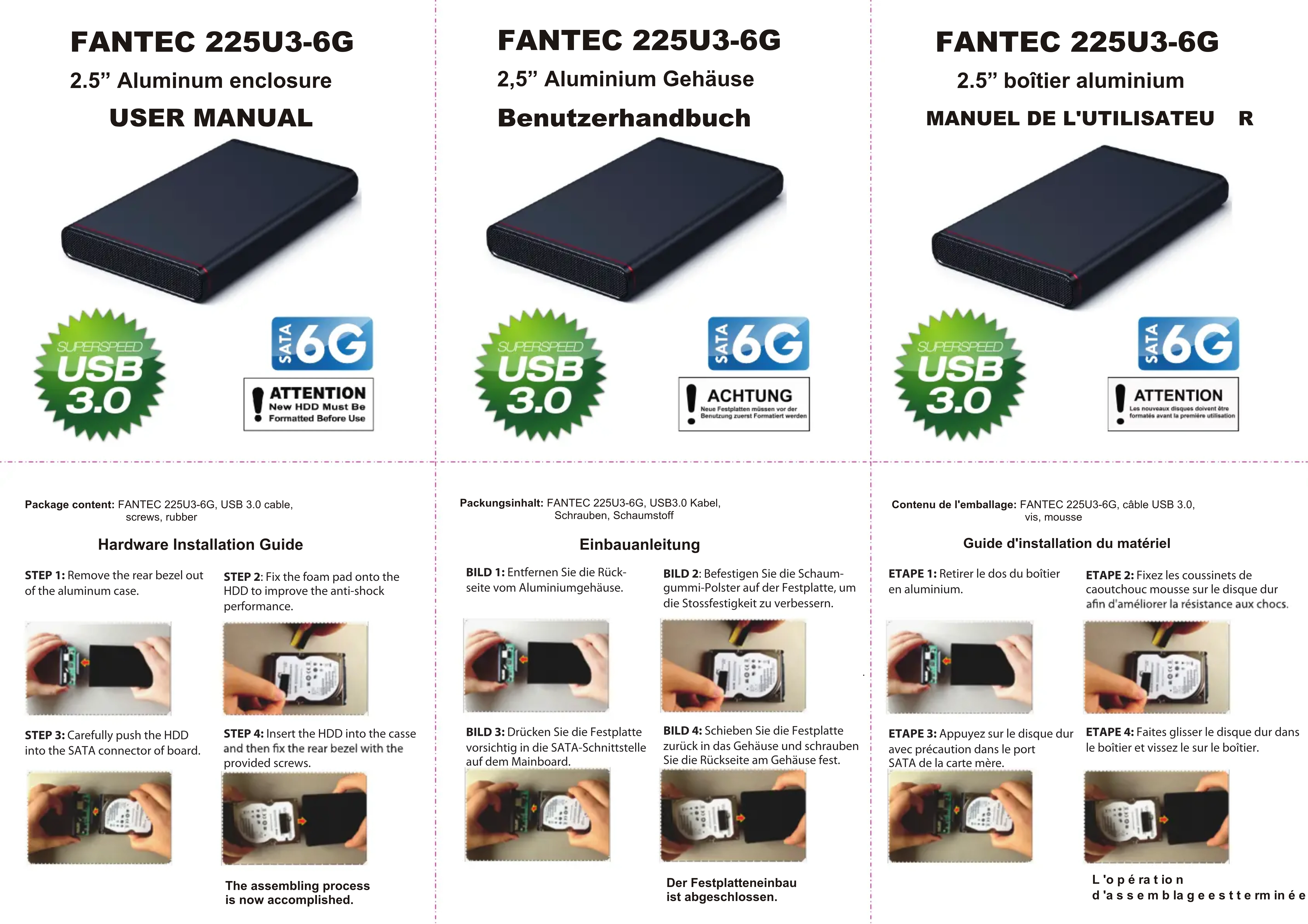 Téléchargez la notice de votre Disque dur au format PDF gratuitement ! Retrouvez votre notice 225U36G - Fantec et reprennez votre appareil électronique en main. Sur cette page sont publiés tous les documents nécessaires à l'utilisation de votre appareil 225U36G de la marque Fantec.
