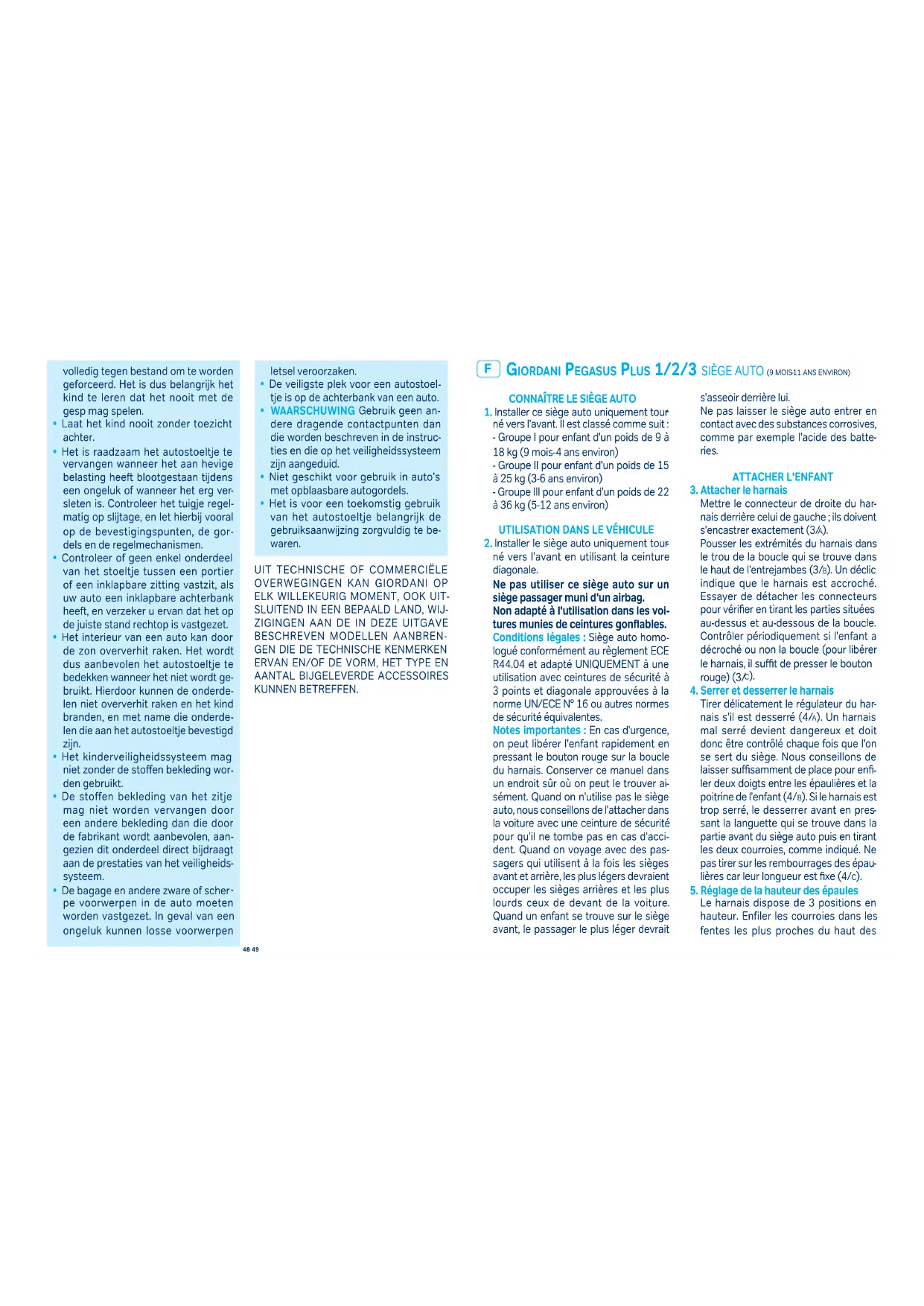 Pegasus Plus - Siège de voiture Giordani - Notice d'utilisation et mode d'emploi gratuit