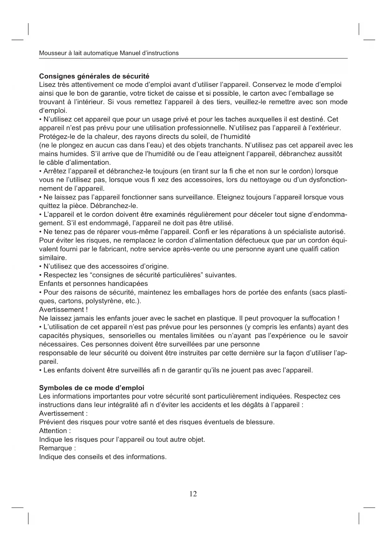| Informations générales | Idéal pour préparer des boissons lactées, léger et compact, design moderne. |
