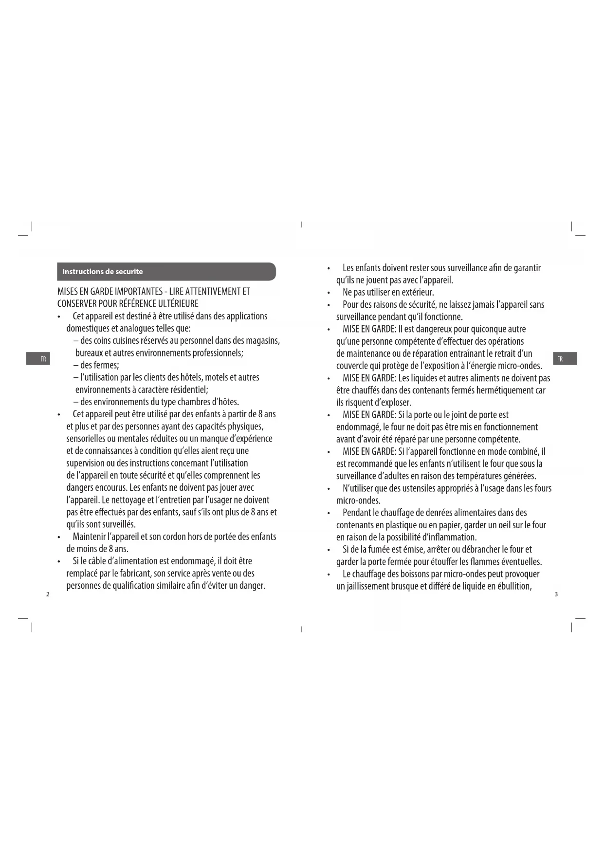 - MISE EN GARDE: Si l’appareil fonctionne en mode combiné, il est recommandé que les enfants n‘utilisent le four que sous la surveillance d’adultes en raison des températures générées