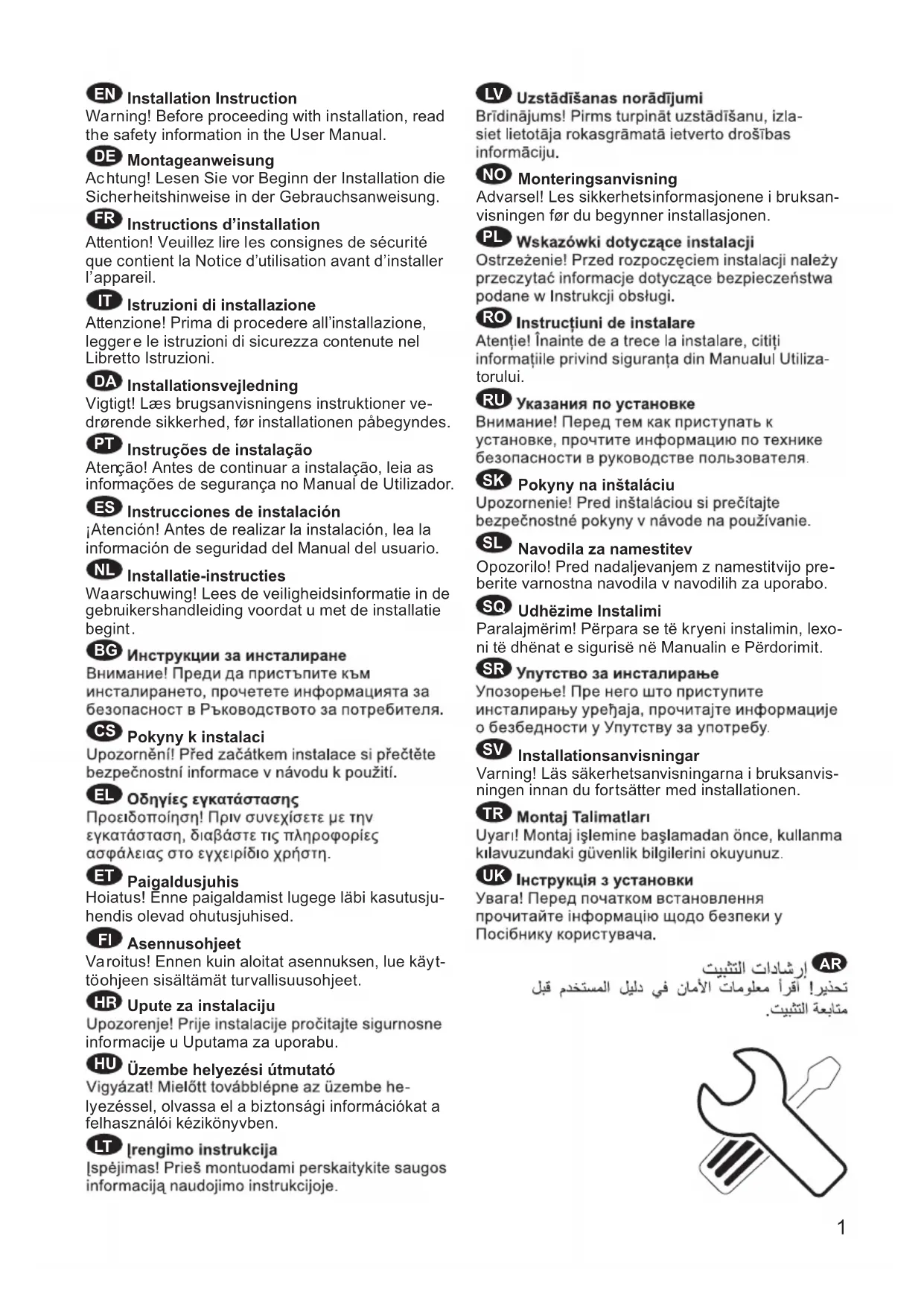 tention! Veuillez lire les consignes de sécurité que contient la Notice d’utilisation avant d’installer