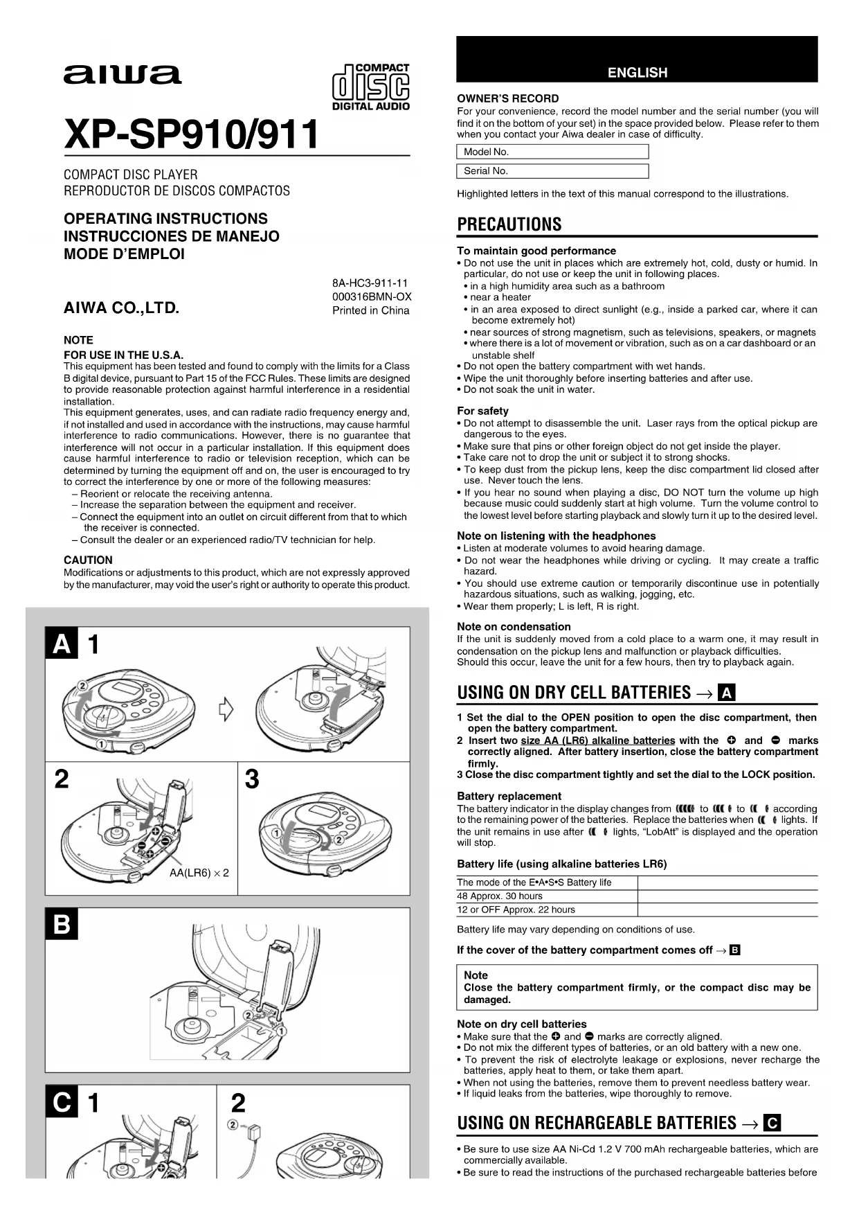 XPSP910 - Lecteur/enregistreur de cd AIWA - Notice d'utilisation et mode d'emploi gratuit