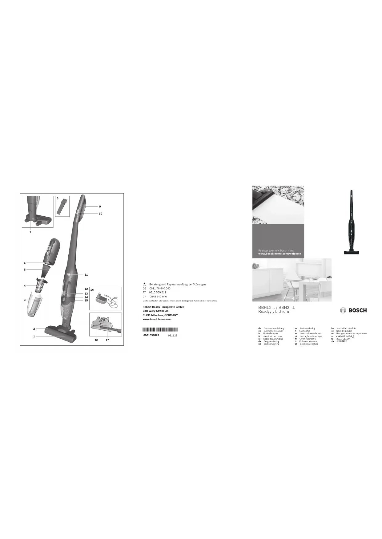 Retrouvez gratuitement la notice de l'appareil BBHL2211CN BOSCH au format PDF.
