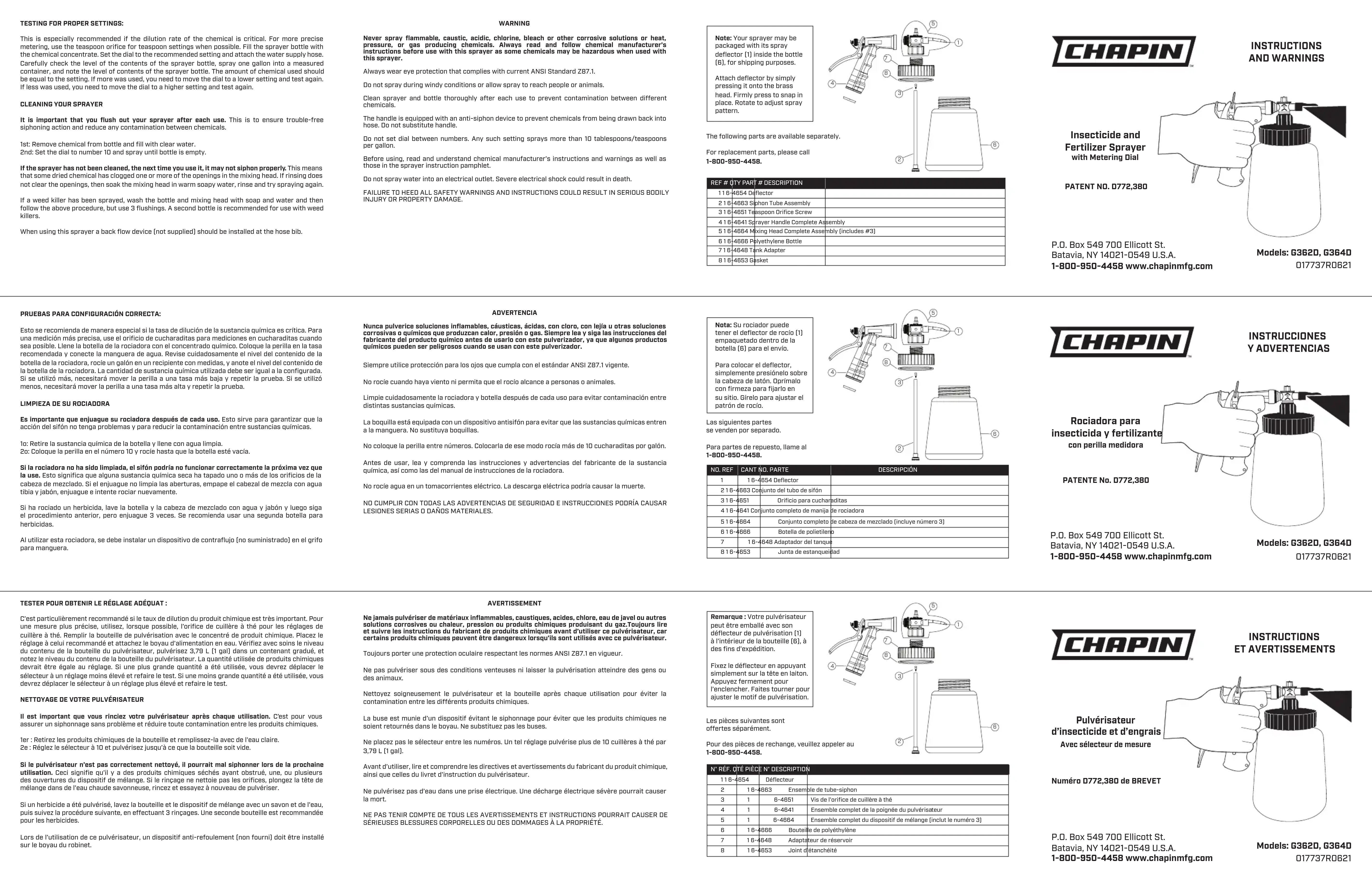 Retrouvez gratuitement la notice de l'appareil G362D Chapin au format PDF.