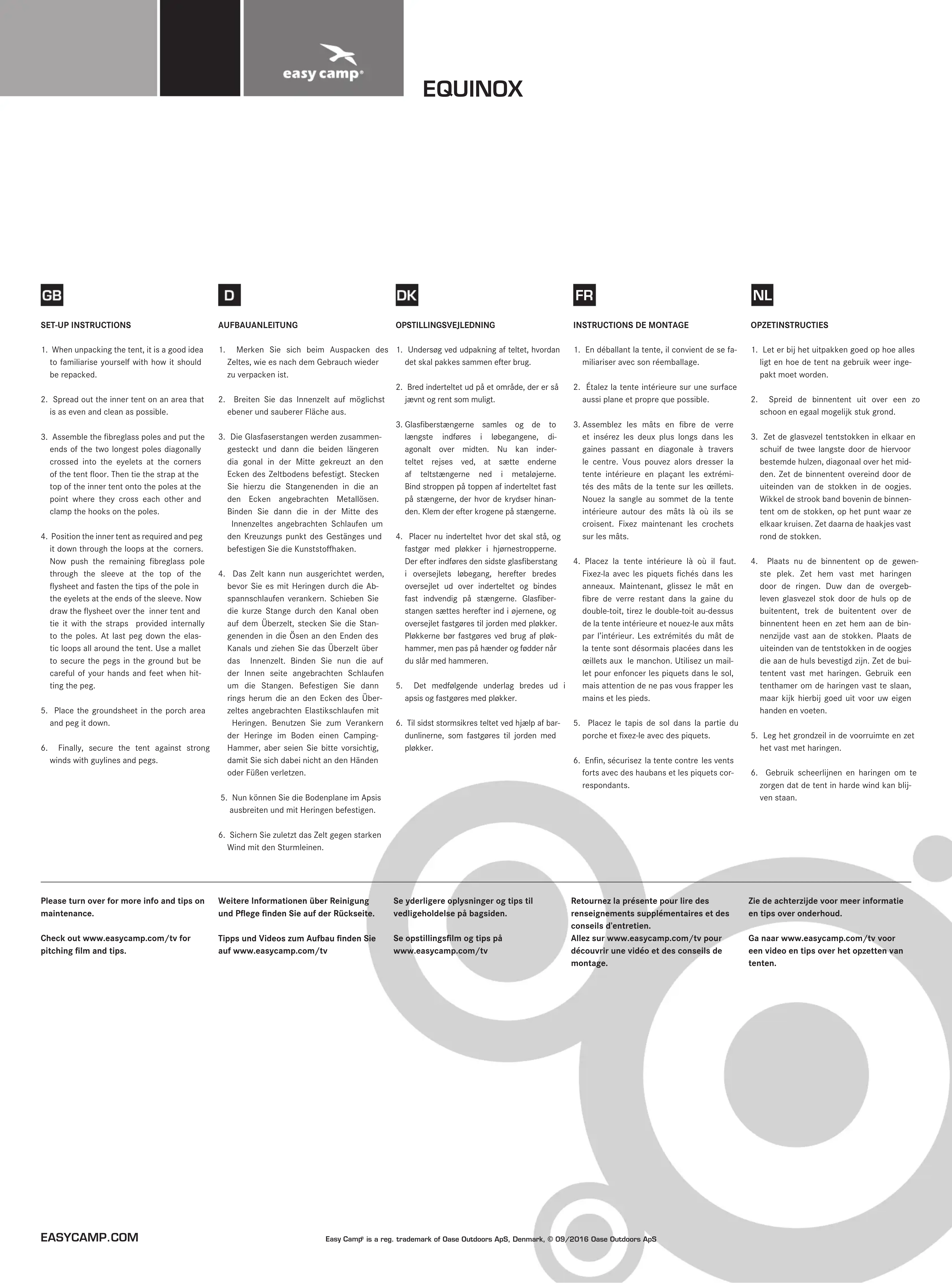 Allez sur www.easycamp.com/tv pour découvert une vente et des conseils de montage.