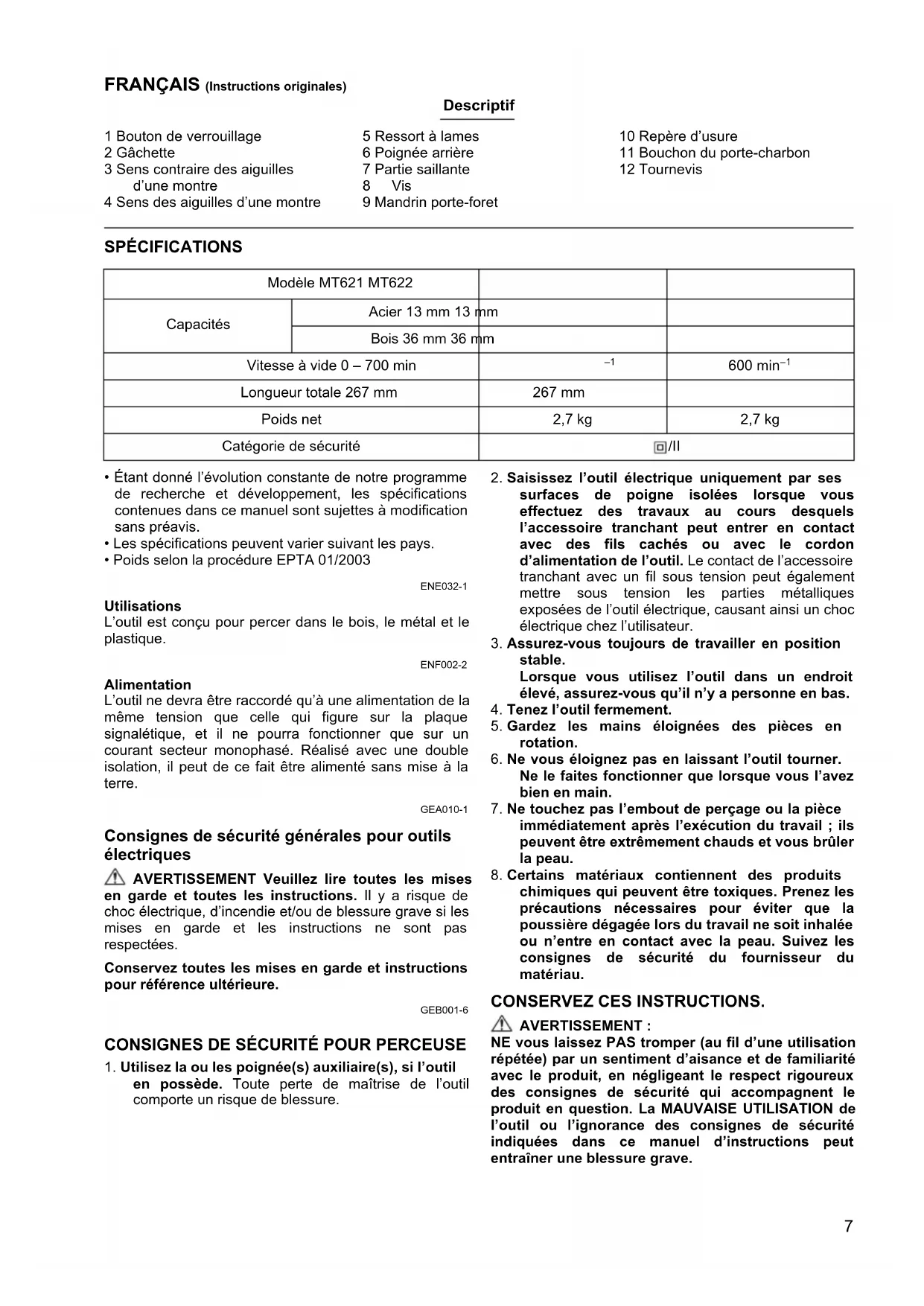 MODE D'EMPLOI MT621 Maktec