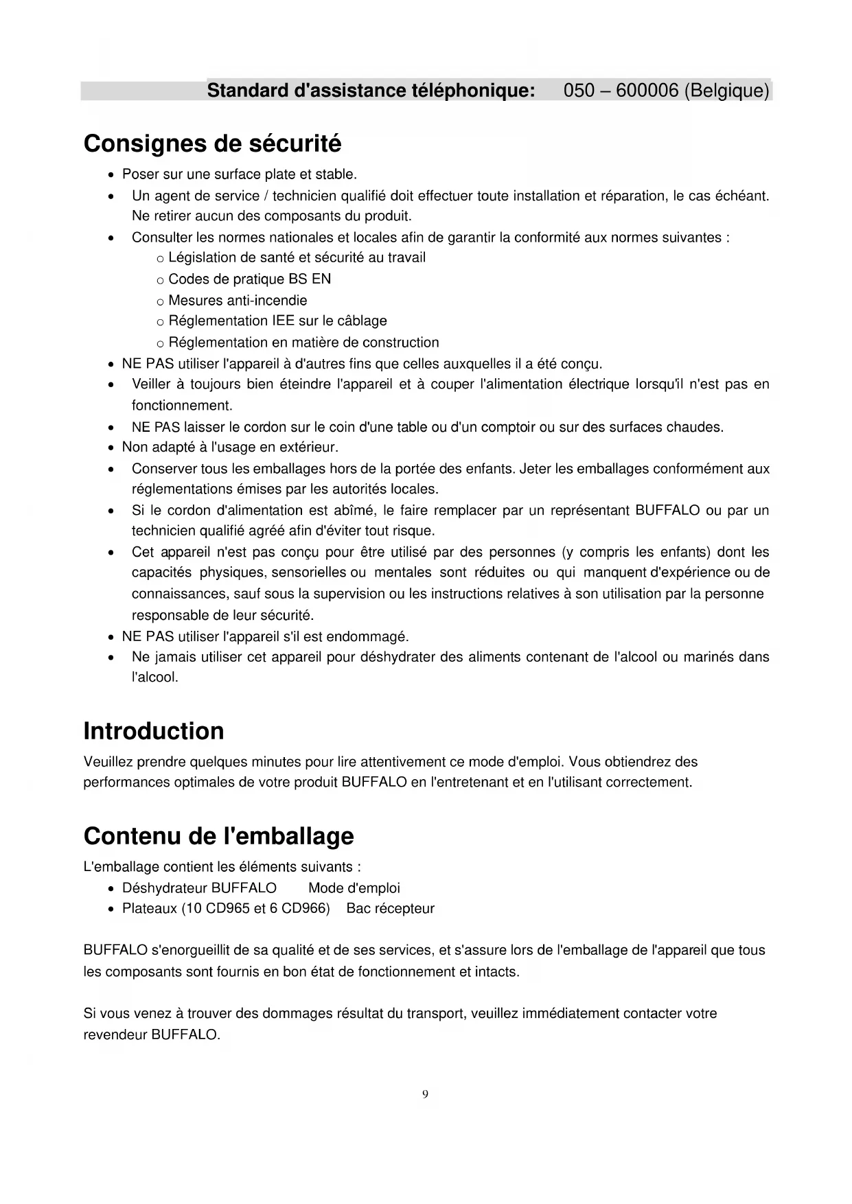 BUFFALO s'enorgueillit de sa qualité et de ses services, et s'assure lors de l'emballage de l'appareil que tous les composants sont fournis en bon état de fonctionnement et intacts.