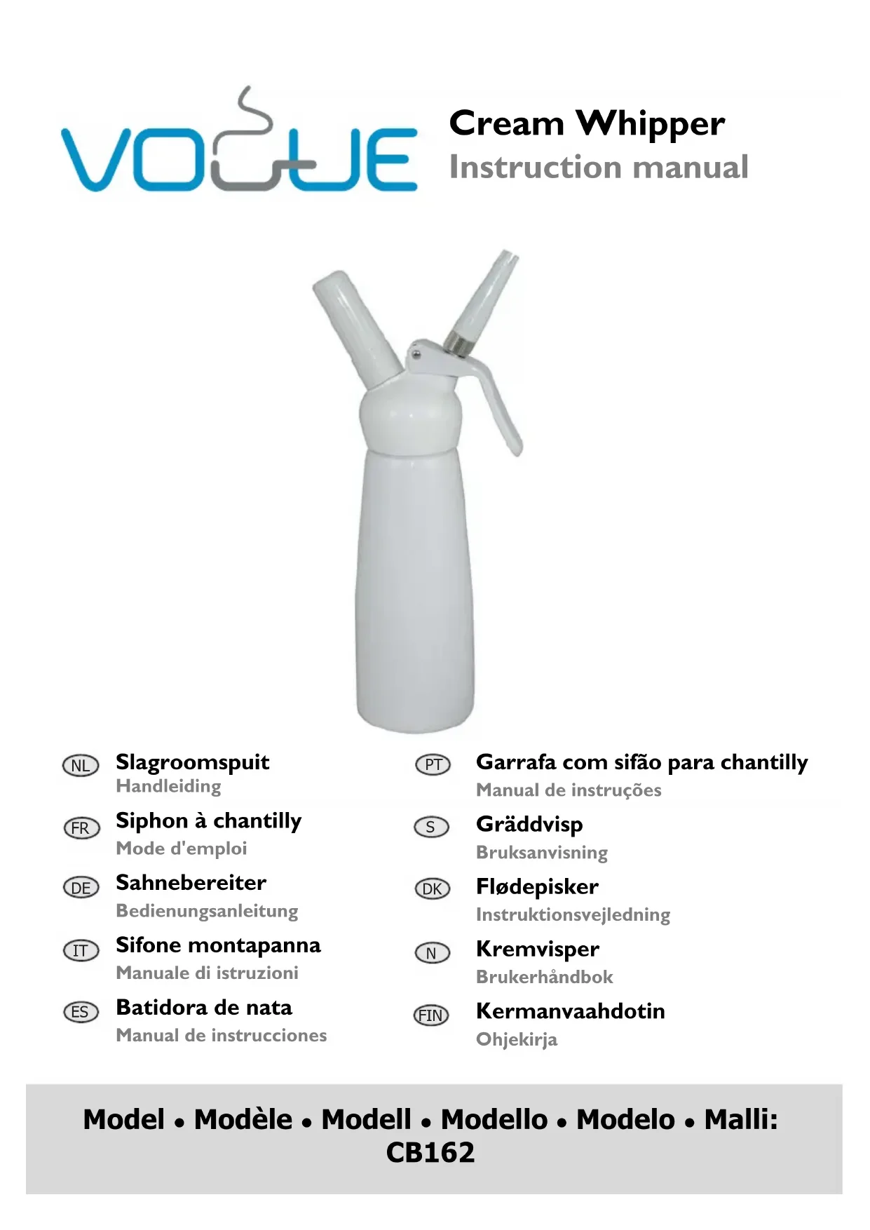 CB162 - Ustensile de cuisine Vogue - Notice d'utilisation et mode d'emploi gratuit