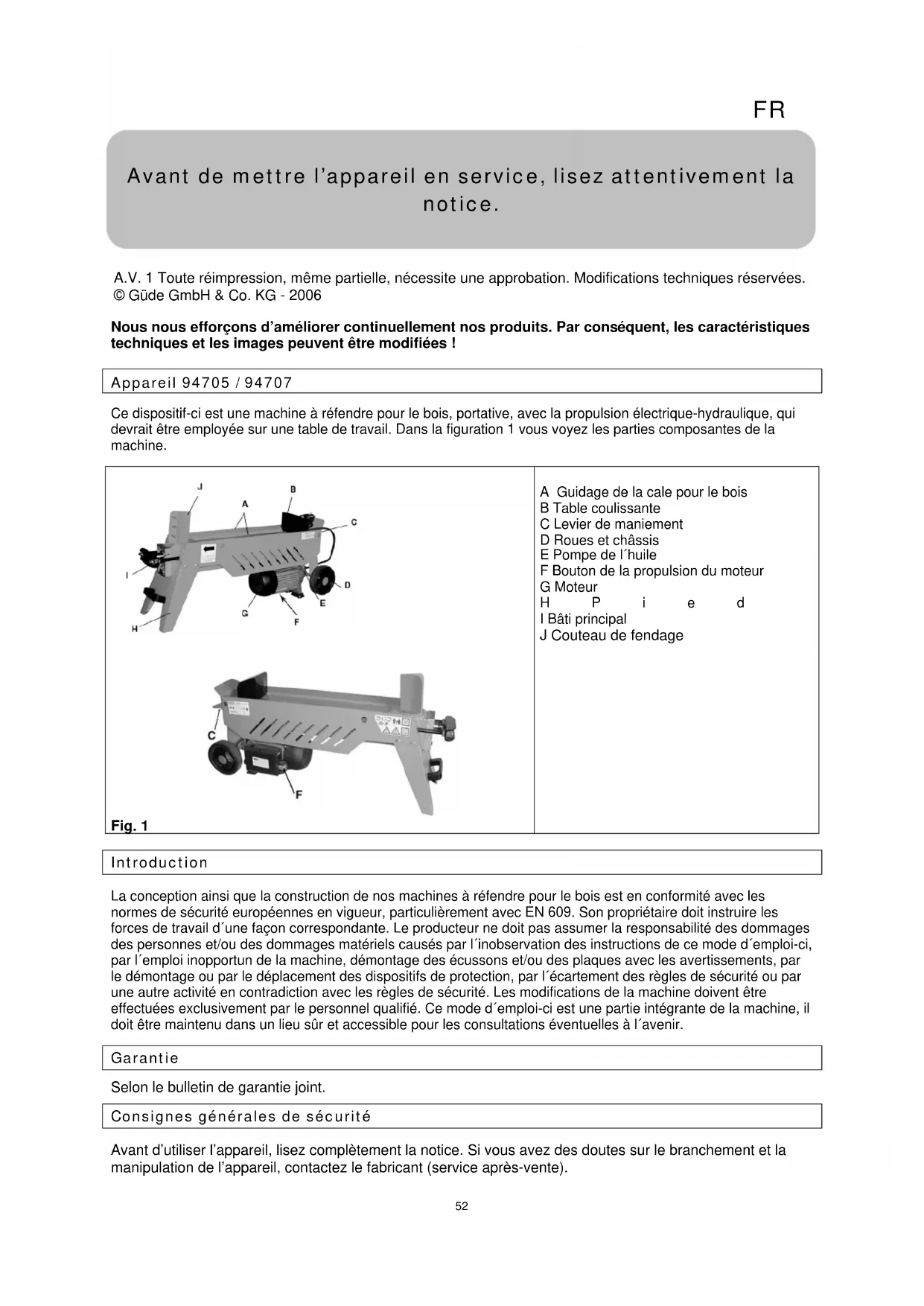 A.V. 1 Toute réimpression, même partielle, nécessite une approbation. Modifications techniques réservées. © Güde GmbH & Co. KG - 2006