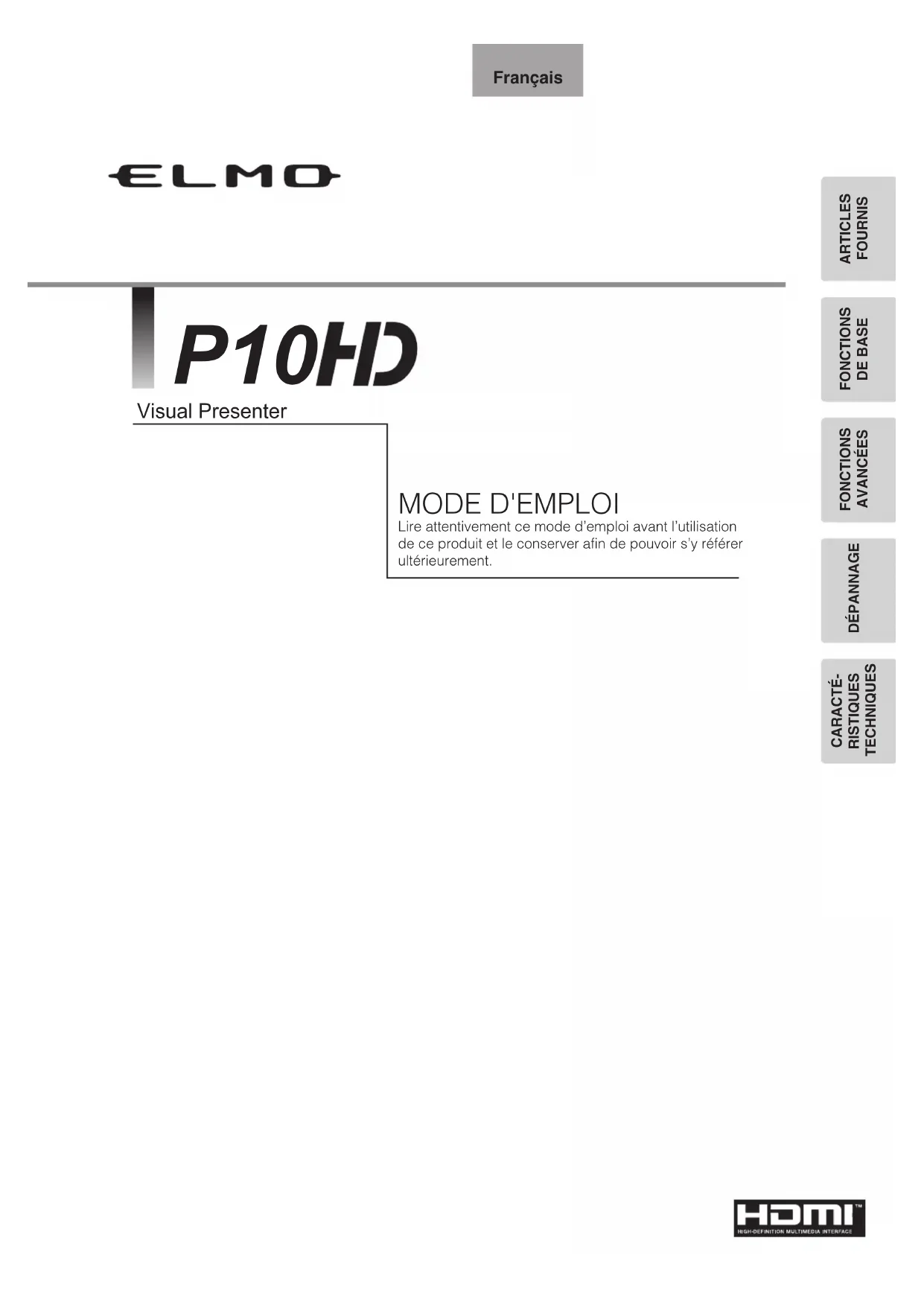Retrouvez gratuitement la notice de l'appareil P10HD Elmo au format PDF.