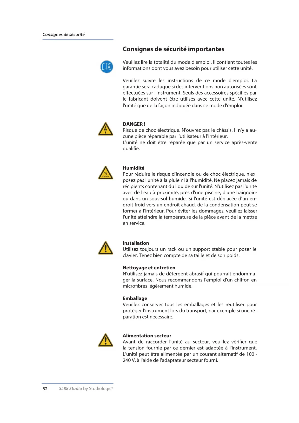 Retrouvez gratuitement la notice de l'appareil SL88 Studio Studiologic au format PDF.