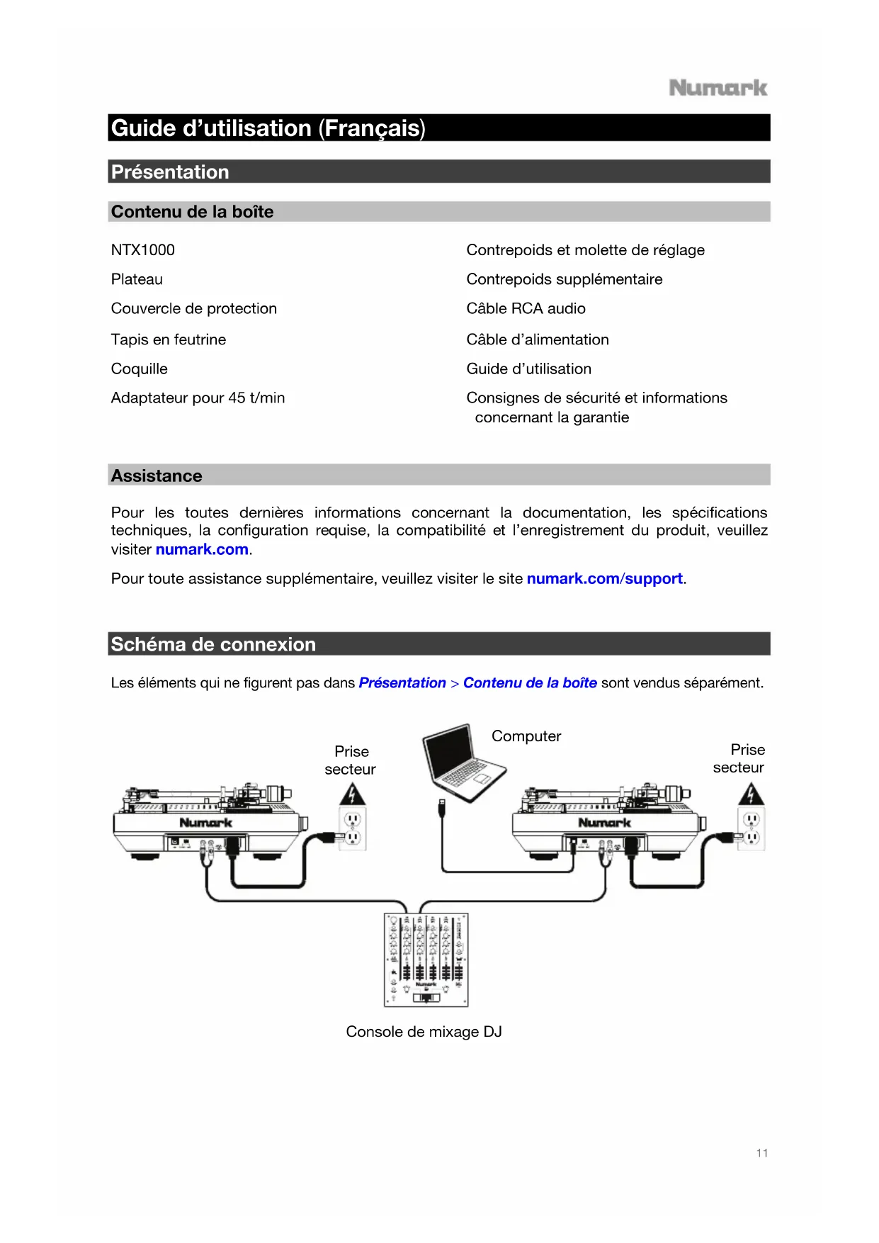 MODE D'EMPLOI NXT1000 NUMARK