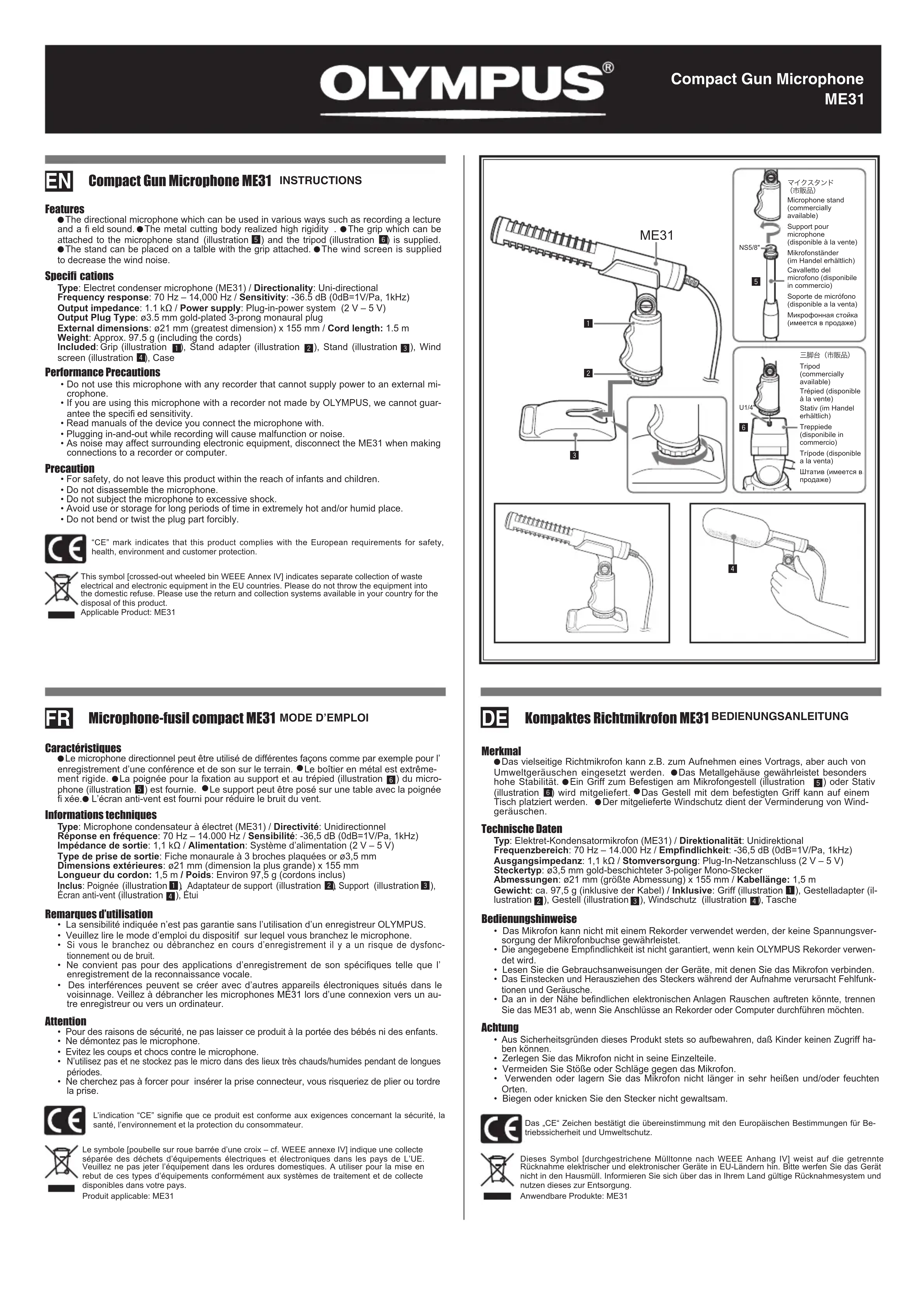 Téléchargez la notice de votre Microphone au format PDF gratuitement ! Retrouvez votre notice ME31 Compacte Gun - OLYMPUS et reprennez votre appareil électronique en main. Sur cette page sont publiés tous les documents nécessaires à l'utilisation de votre appareil ME31 Compacte Gun de la marque OLYMPUS.