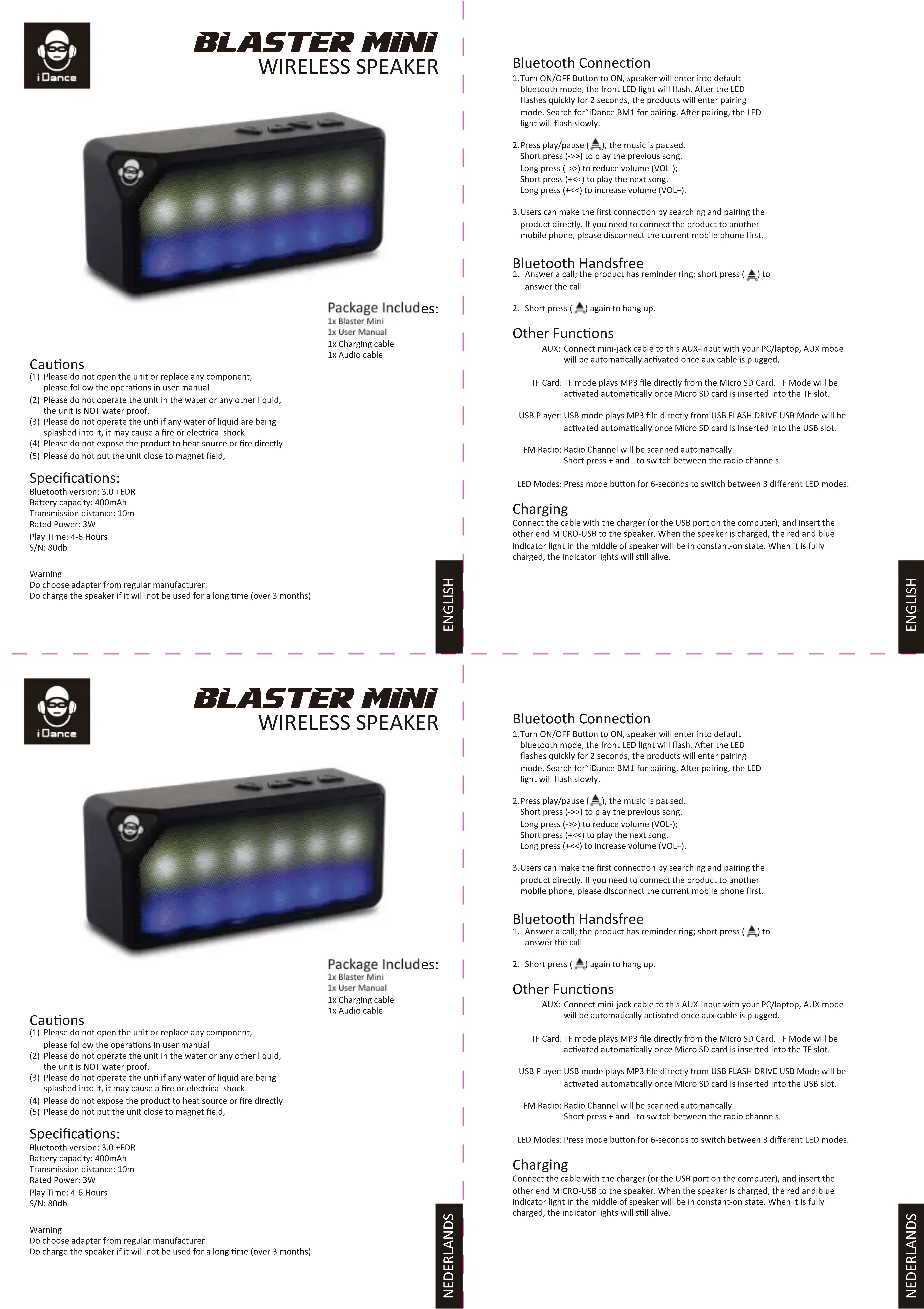 MODE D'EMPLOI Mini Blaster BM1 iDance