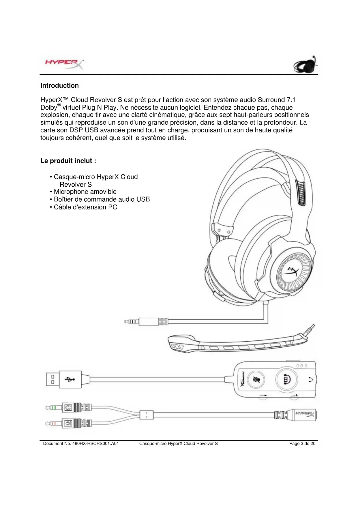 Cloud Revolver S - Casque HYPERX - Notice d'utilisation et mode d'emploi gratuit