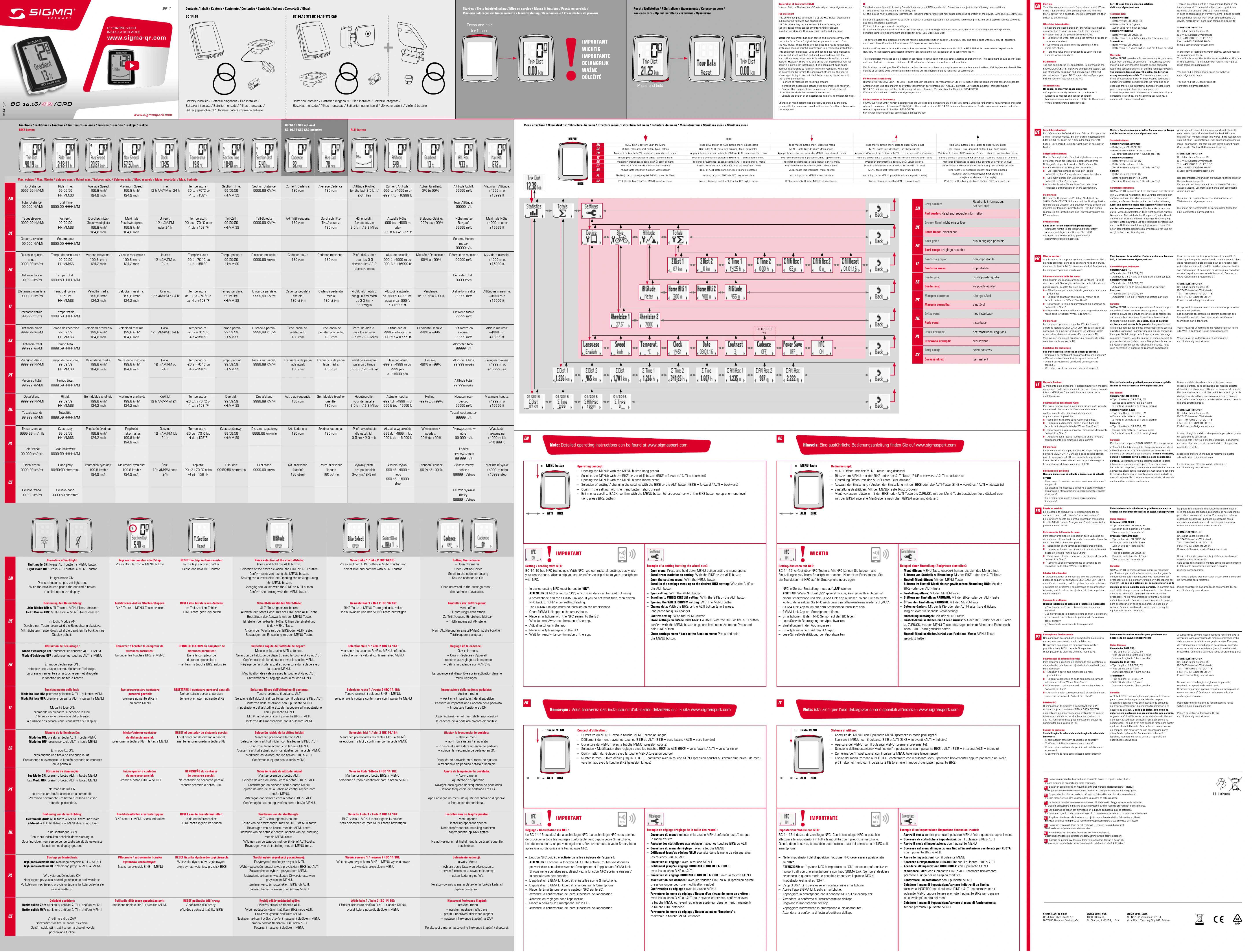 BC 14.16 ALTI STS - Compteur SIGMA - Notice d'utilisation et mode d'emploi gratuit