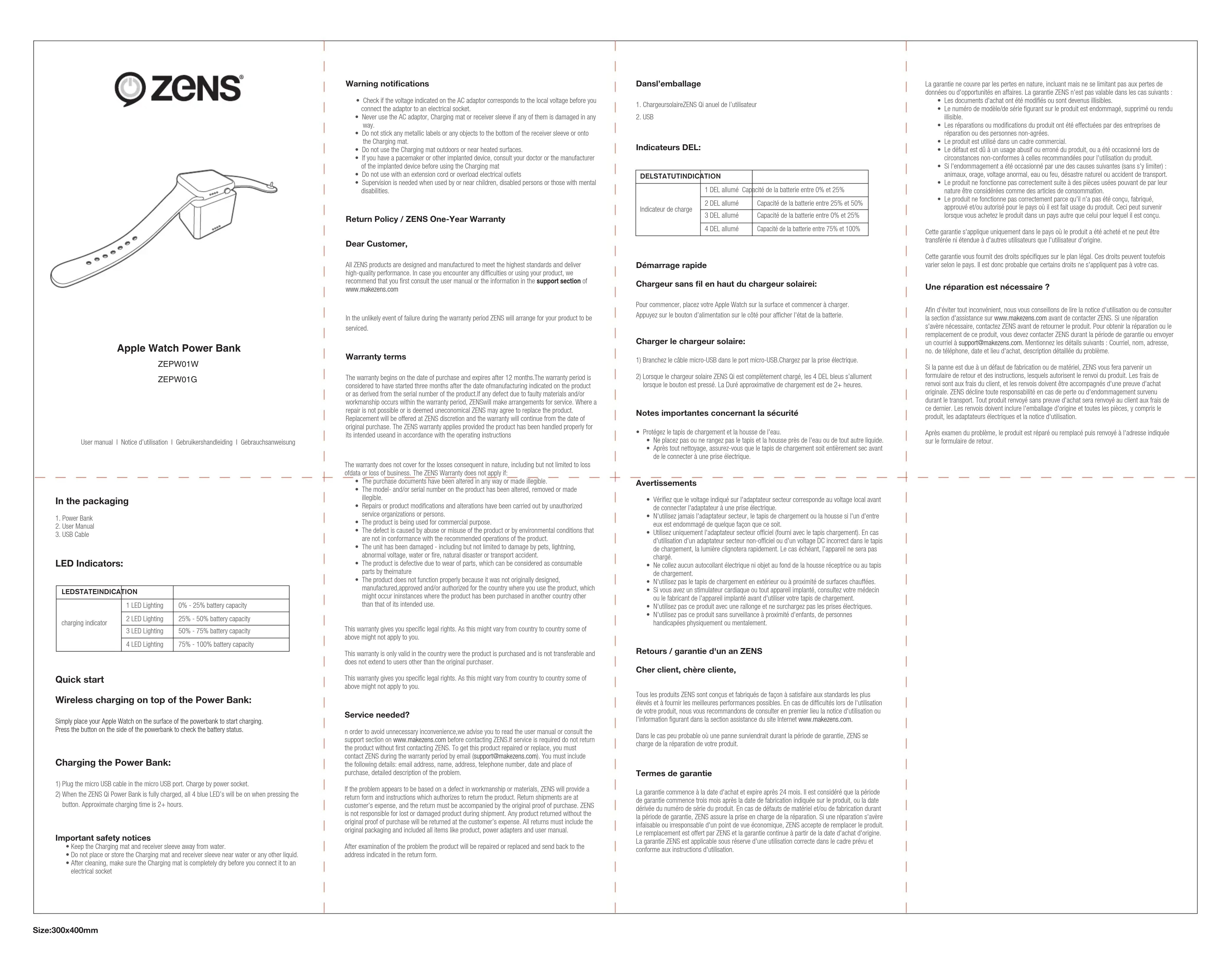 Apple Watch Power Bank - Batterie portable Zens - Notice d'utilisation et mode d'emploi gratuit