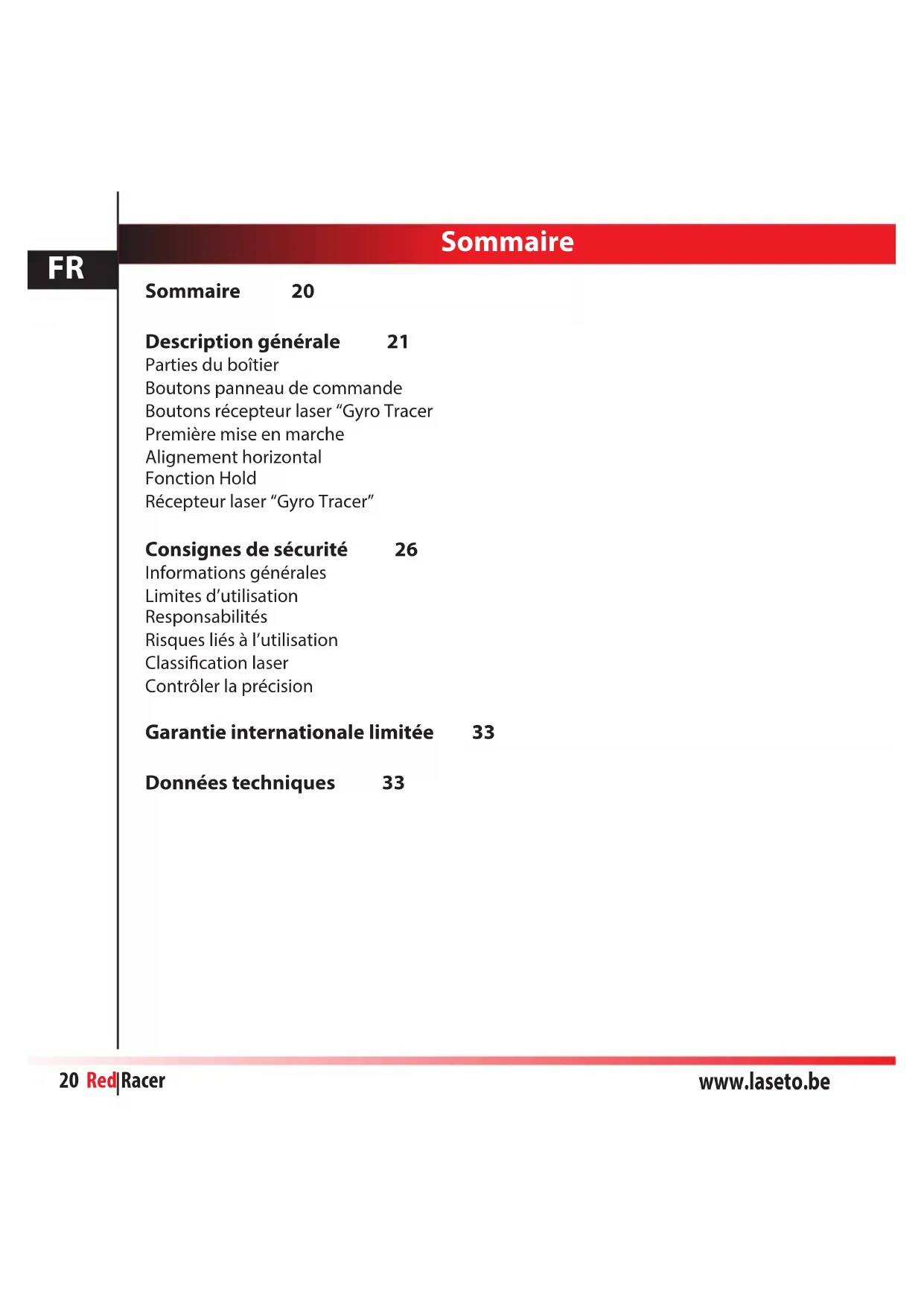 Téléchargez la notice de votre Niveau laser au format PDF gratuitement ! Retrouvez votre notice Red Racer - FUTECH et reprennez votre appareil électronique en main. Sur cette page sont publiés tous les documents nécessaires à l'utilisation de votre appareil Red Racer de la marque FUTECH.
