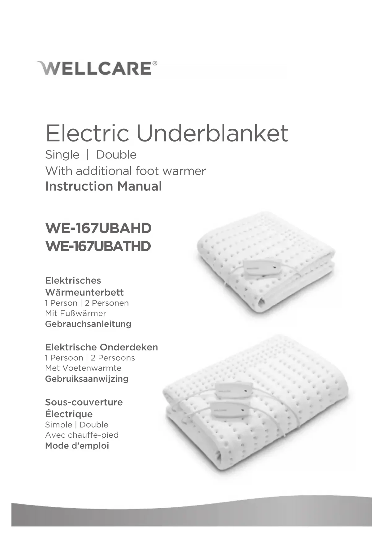WE167UBAHD - Couverture/coussin chauffant Wellcare - Notice d'utilisation et mode d'emploi gratuit