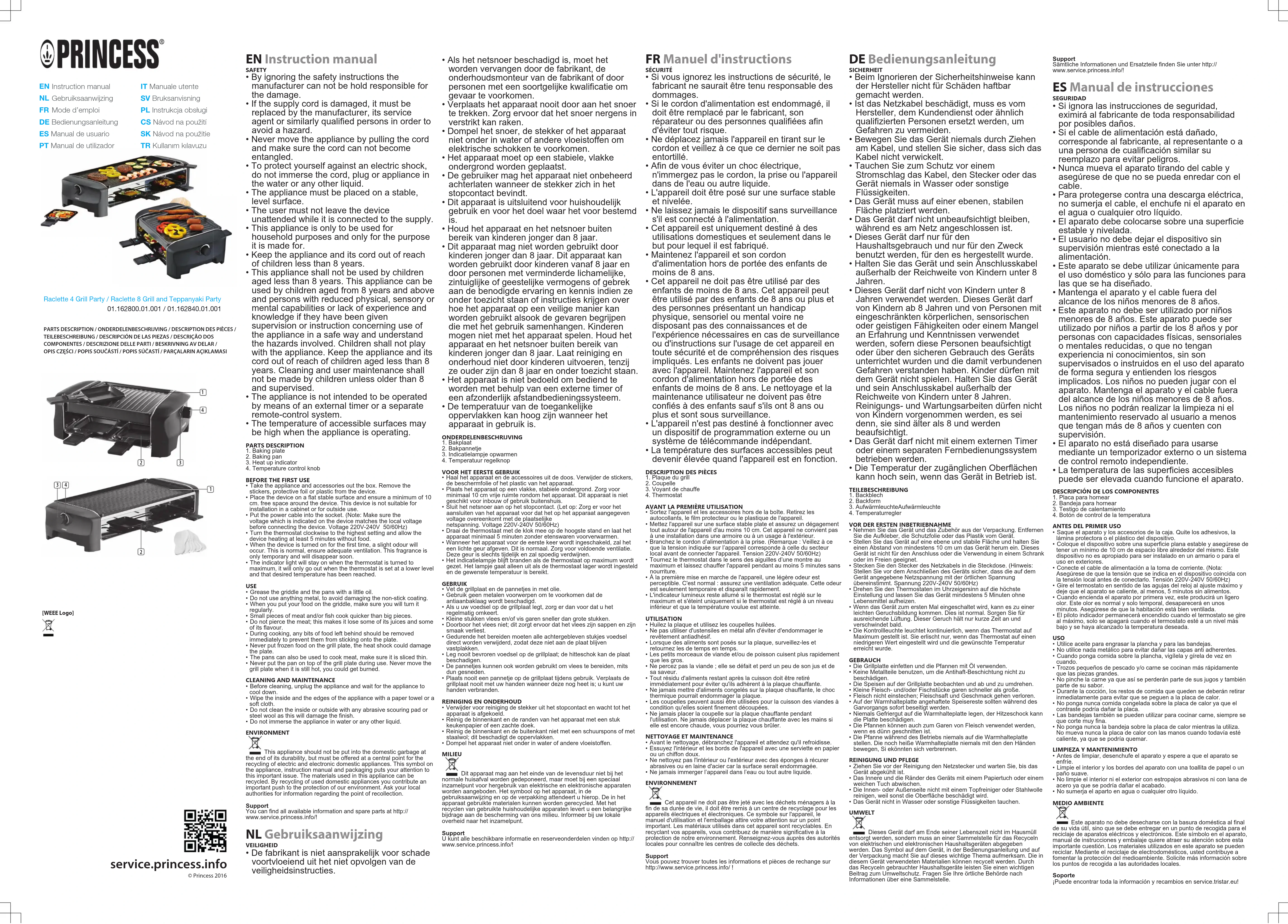 Retrouvez gratuitement la notice de l'appareil Raclette 8 Grill and Teppanyaki Party PRINCESS au format PDF.