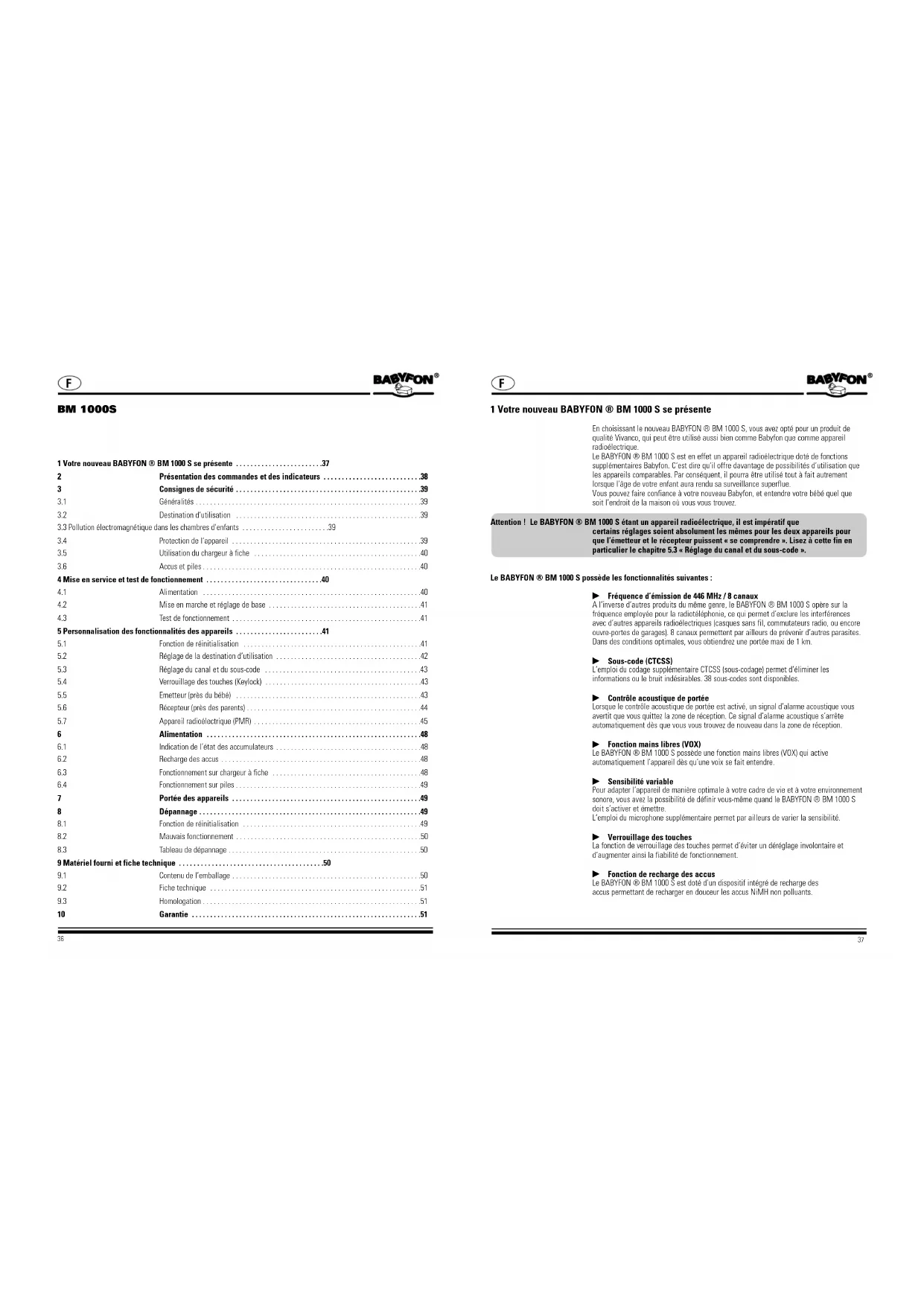 - BM 1000S 1 Votre nouveau BABYFON ® BM 1000 S se présente p. 37