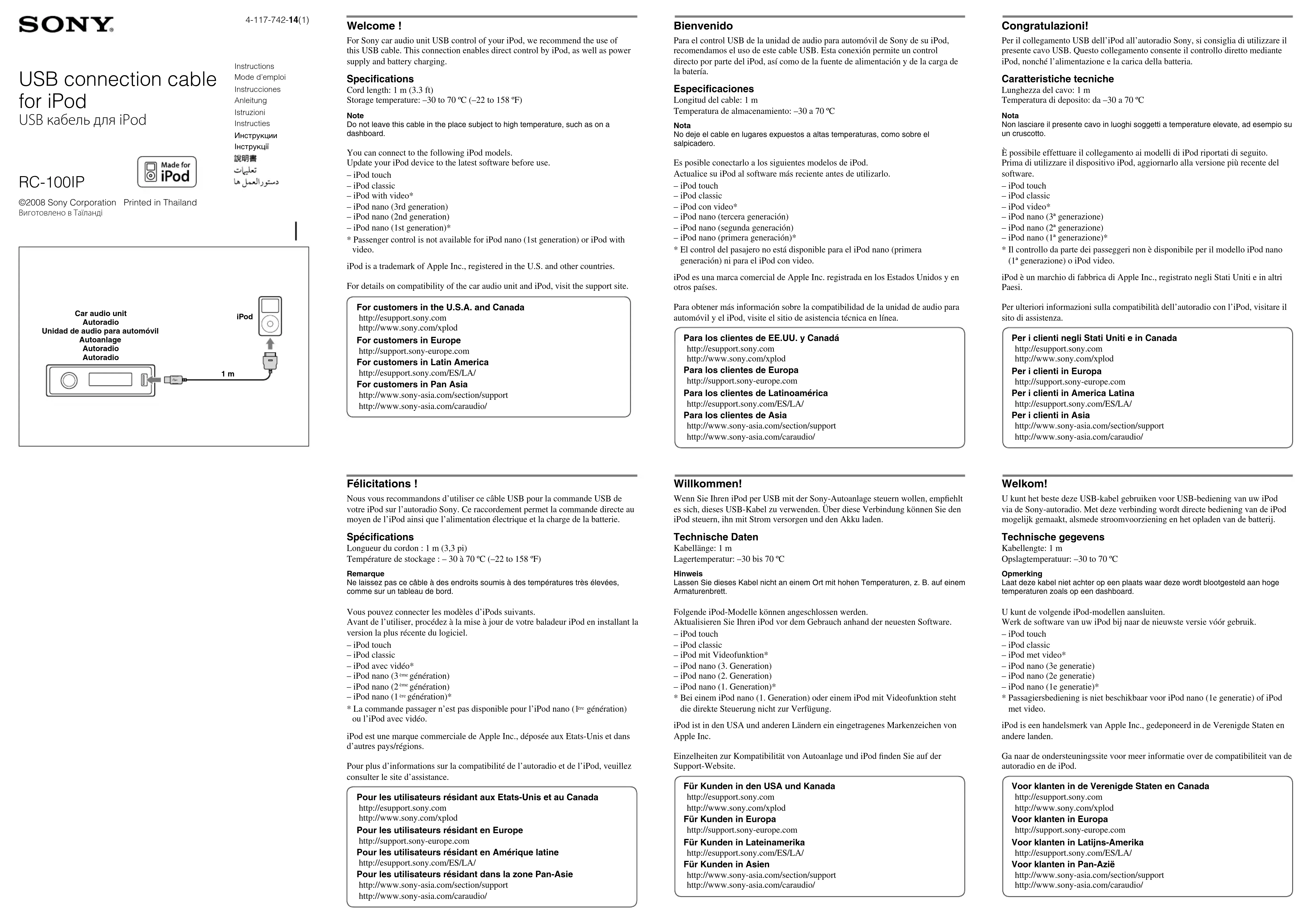 RC100IP - Câble USB SONY - Notice d'utilisation et mode d'emploi gratuit