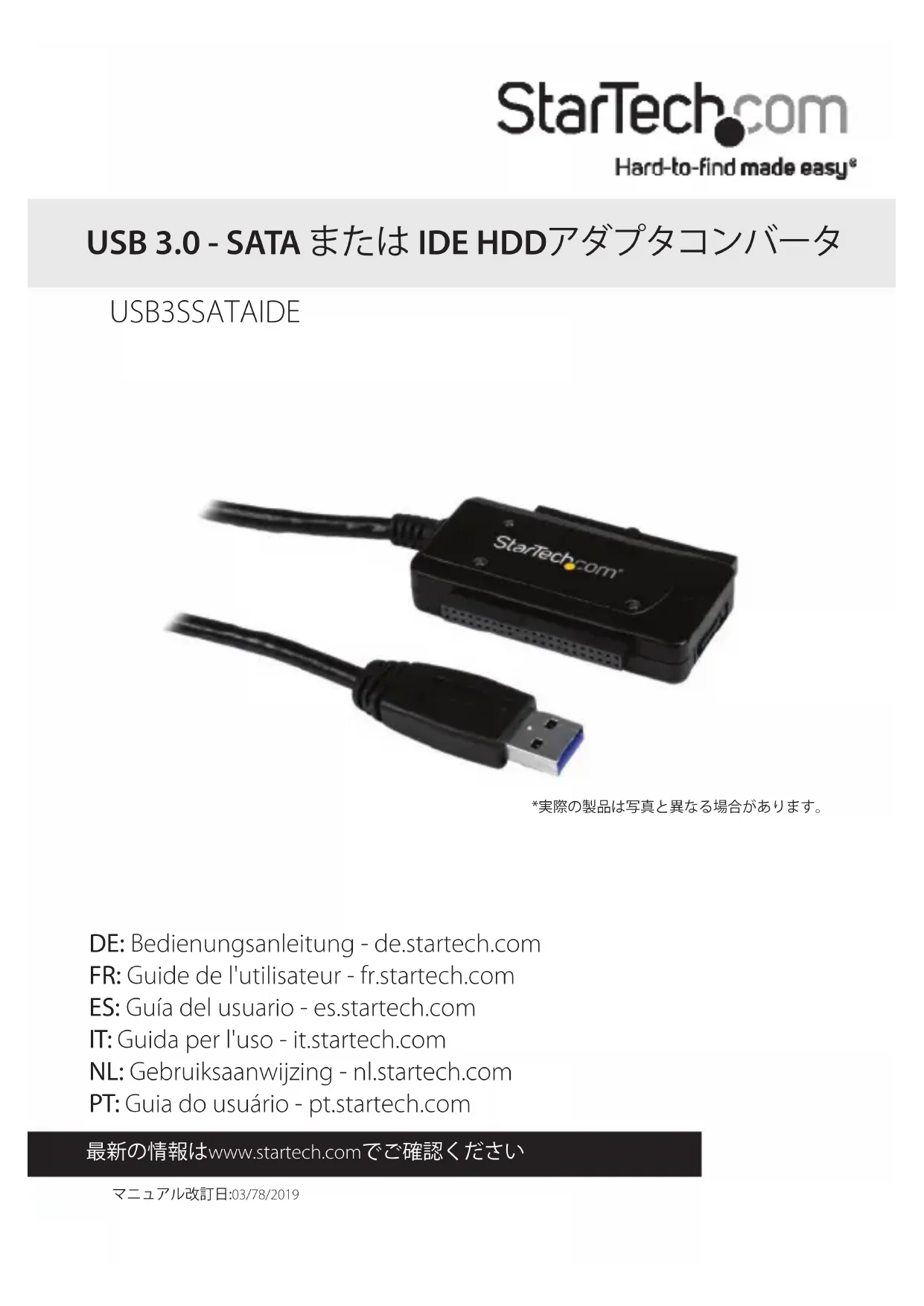 Retrouvez gratuitement la notice de l'appareil USB3SSATAIDE StarTech.com au format PDF.