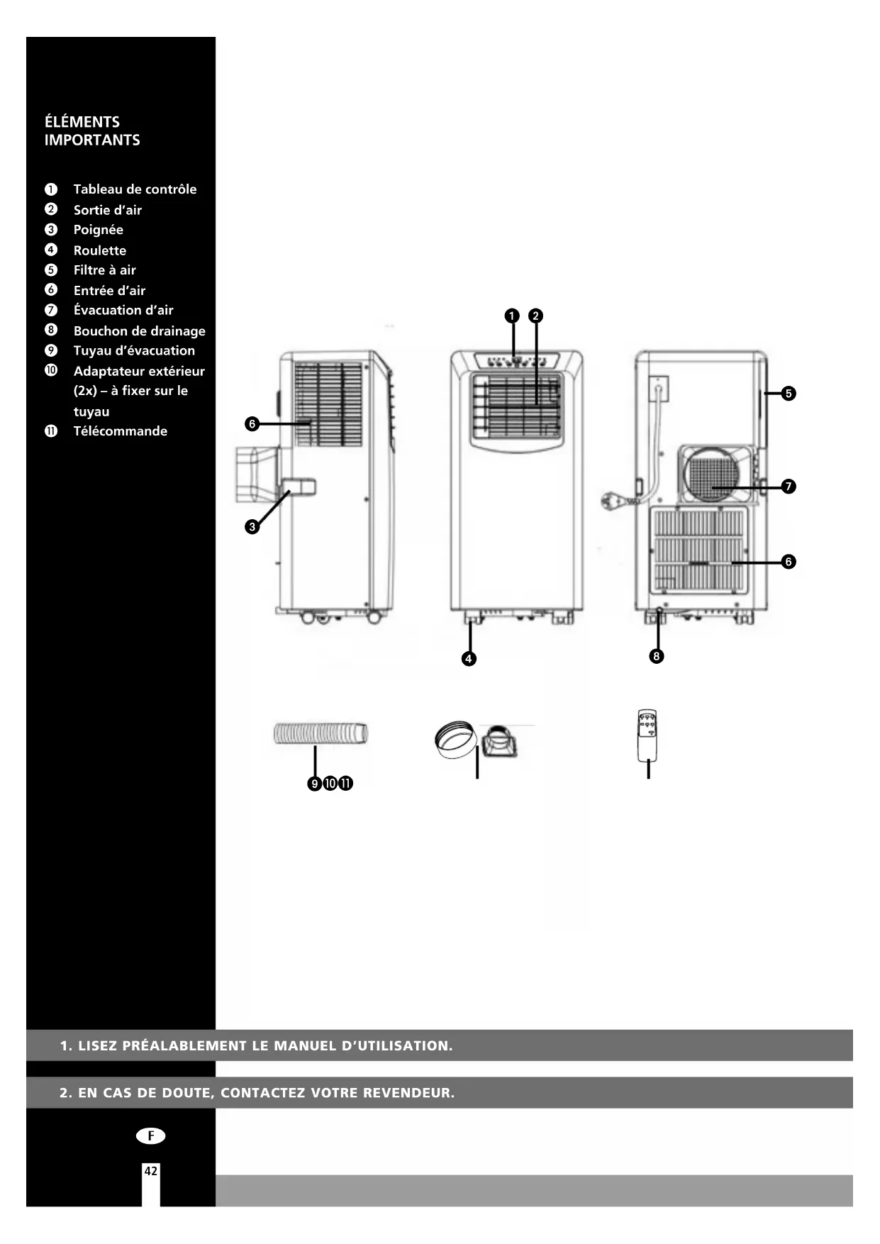 Par mesure de sécurité, consulter attentivement ce manuel d’instructions! Les personnes qui ne sont pas familiarisées avec ce manuel d’instructions, ne doivent pas utiliser ce climatiseur. Nous vous con- seillons de ranger ce manuel d’instructions à un endroit sûr pour pouvoir le consulter ultérieure- ment.