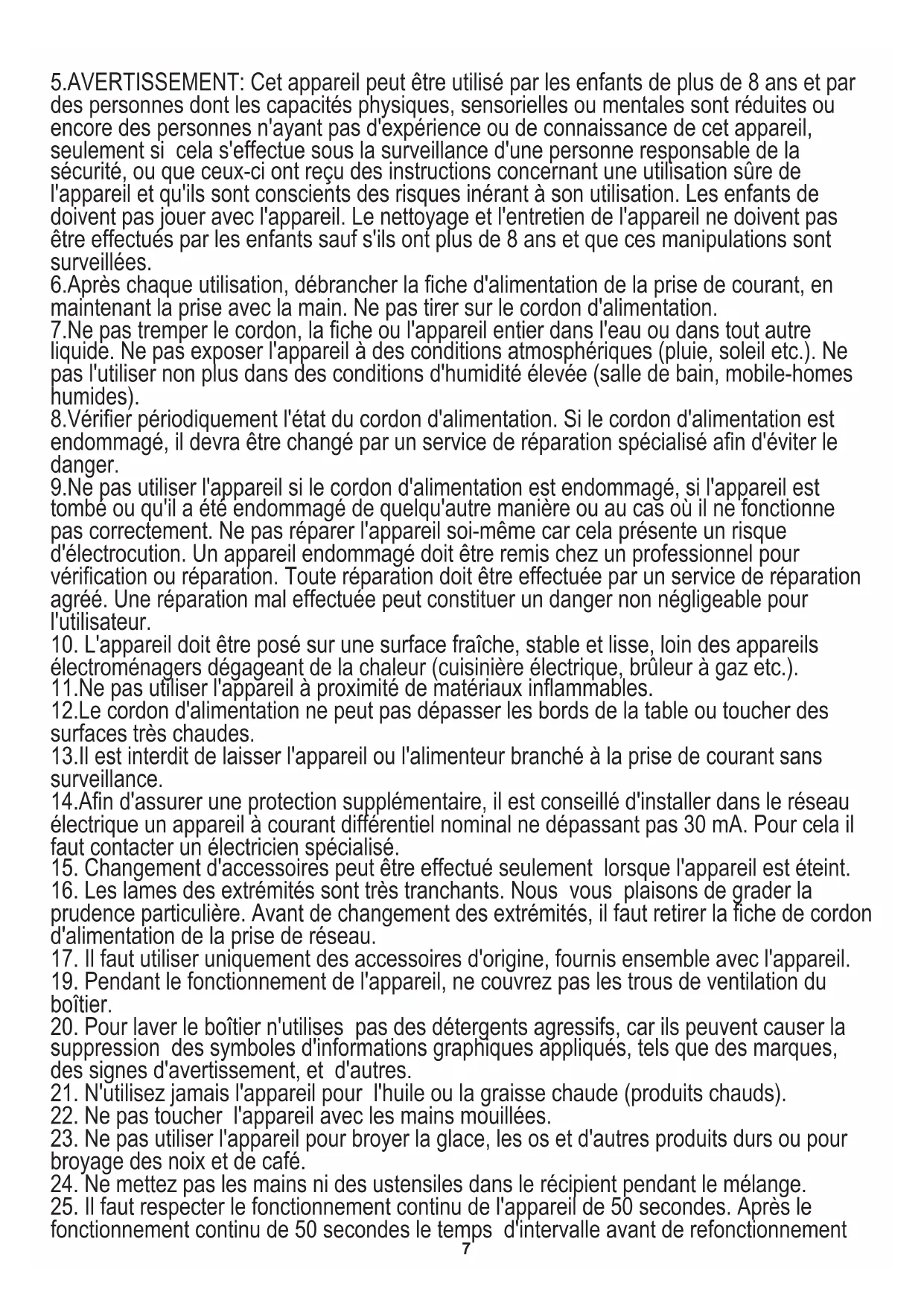 24. Ne mettez pas les mains ni des ustensiles dans le récipient pendant le mélange.