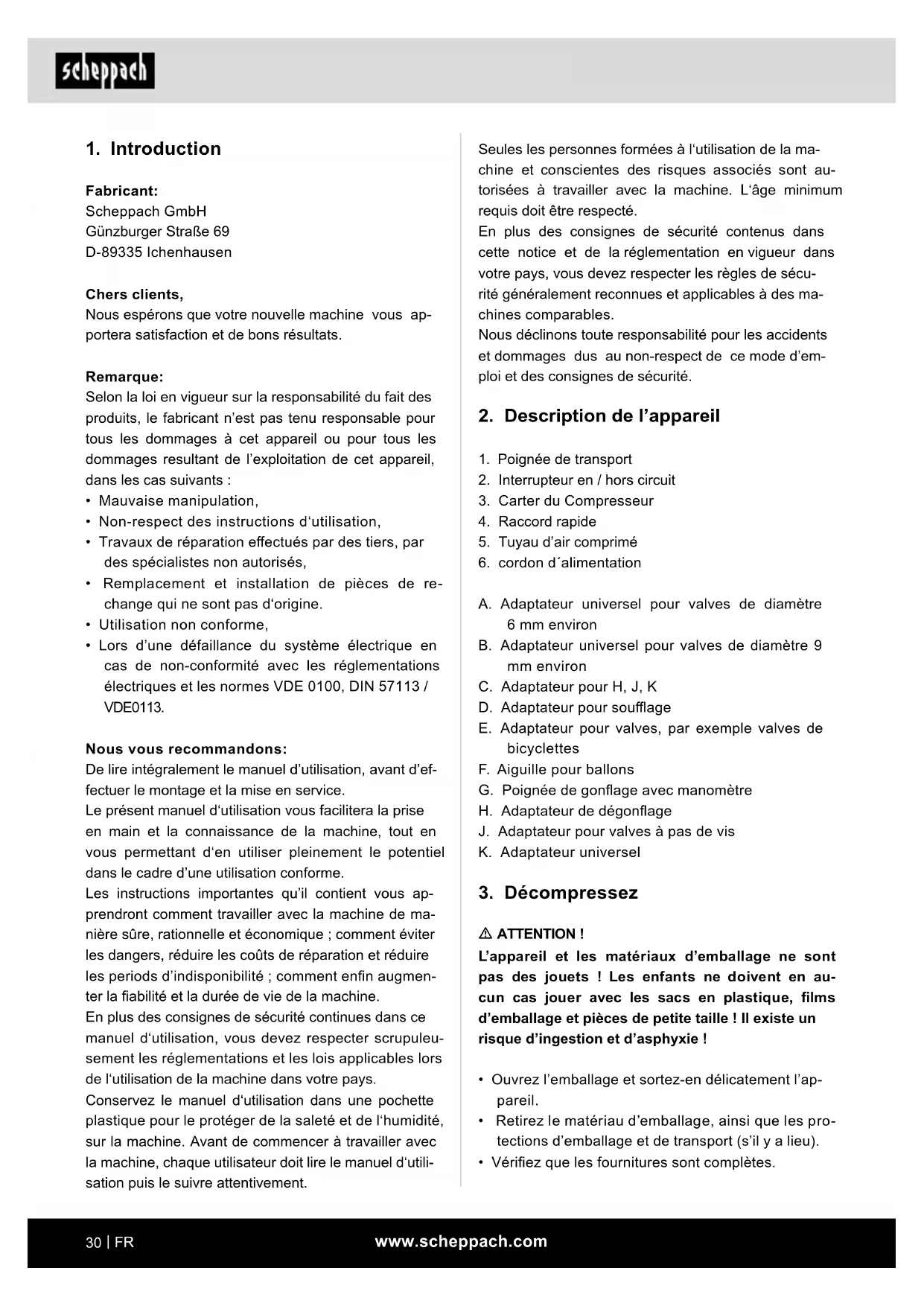 Retrouvez gratuitement la notice de l'appareil Air Force SCHEPPACH au format PDF.
