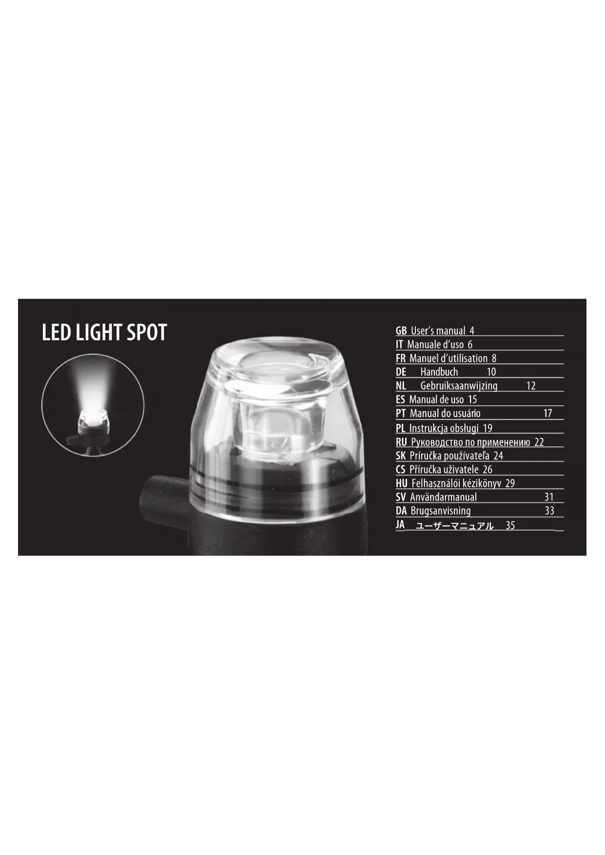 - L'appareil est développé pour une utilisation dans ou hors de l'eau; avant de le brancher au courant, vérifie que le cable et l'wnsemble lumières ne