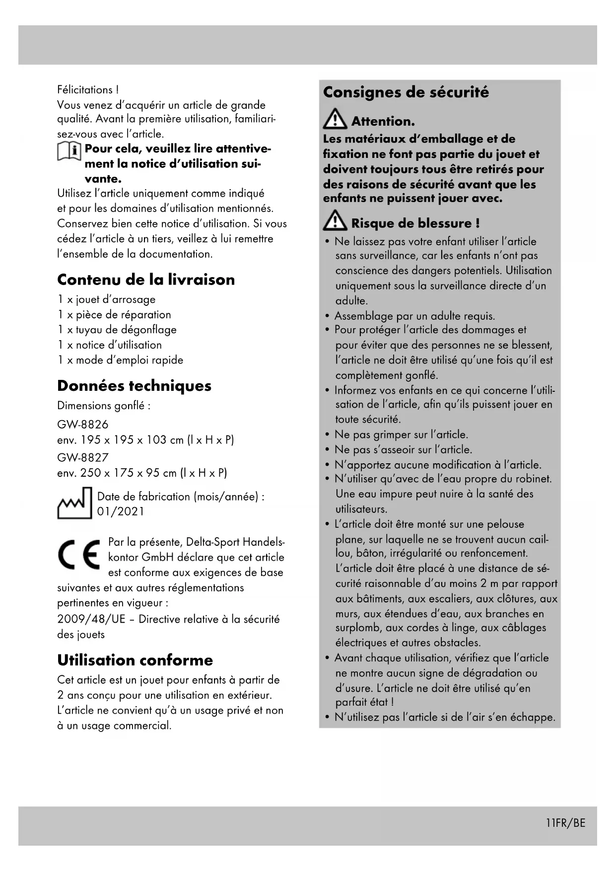 - Informez vos enfants en ce qui concerne l’utili- sation de l’article, afin qu’ils puissent jouer en toute sécurité.