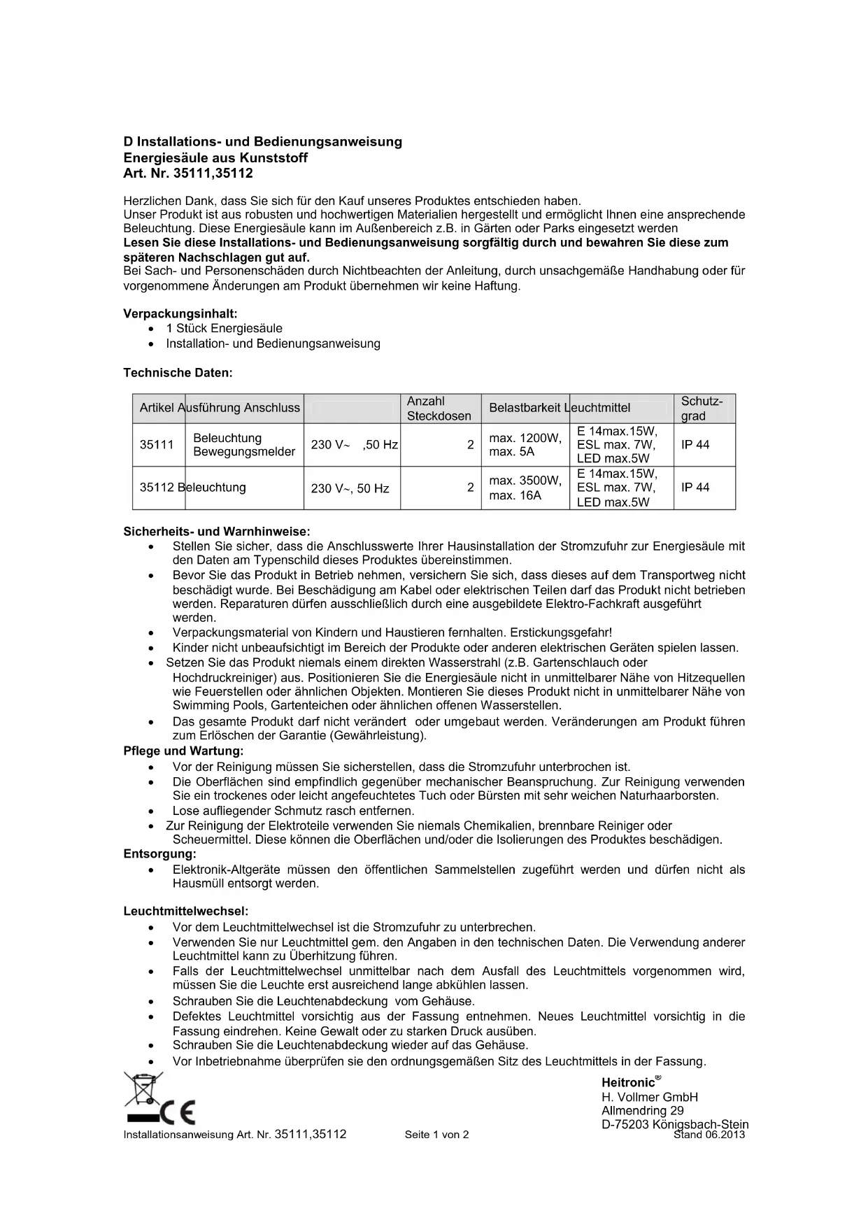 Retrouvez gratuitement la notice de l'appareil 35112 Heitronic au format PDF.